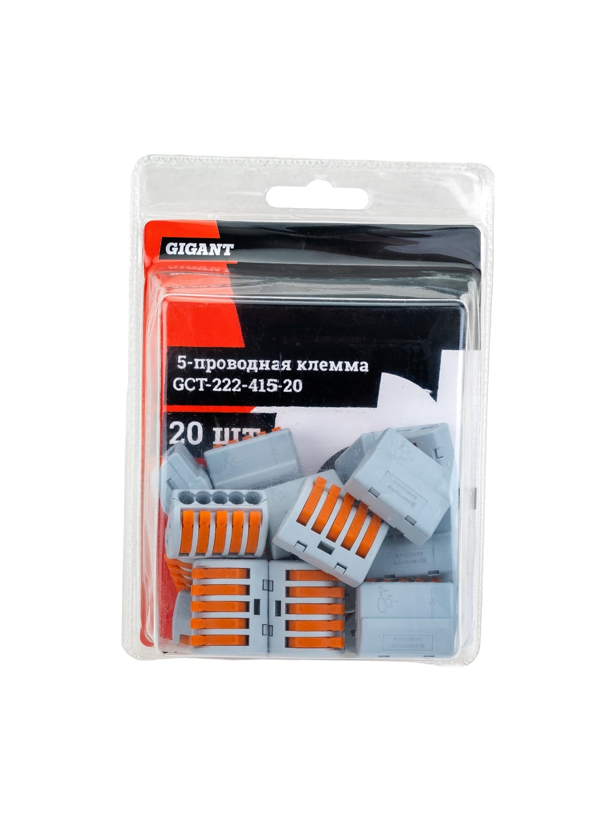 Пятипроводная клемма Gigant 20 шт/уп 0,08-2,5(4)мм² GCT-222-415-20 предназначена для быстрого и надёжного соединения медных проводников при выполнении электромонтажных работ. Применяется в сетях переменного и постоянного тока напряжением до 400 В. Подходит для профессионального использования и бытового монтажа. Клеммы серии 222 позволяют соединять однопроволочные и многопроволочные медные проводники различного сечения в одной клемме: — многопроволочные: 0,14–4 мм²; — однопроволочные: 0,08–2,5 мм². Номинальный ток: — до 24 А (при сечении 2,5 мм²); — до 32 А (при сечении 4 мм²). Рабочая температура окружающей среды — от -40 до +105 °C. Рекомендуемая длина зачистки изоляции — 10 мм. Применяются при монтаже осветительных и розеточных групп, подключении светильников, распределительных коробок, электрощитов, а также при ремонте и модернизации электропроводки. Преимущества: Возможность сочетания проводников разного типа и сечения в одной клемме — удобно при реконструкции и подключении нового оборудования к существующей проводке. Пружинный механизм из нержавеющей стали обеспечивает стабильное контактное давление и надёжную фиксацию без ослабления со временем. Медный контакт с гальваническим покрытием снижает переходное сопротивление и уменьшает риск нагрева. Корпус изготовлен из полимерного материала, соответствующего классу пожарной безопасности UL 94 V0 — не поддерживает горение и самозатухает при устранении источника пламени. Детали выполнены из армированного стекловолокном полимера — повышенная прочность и устойчивость к механическим воздействиям. Быстрый монтаж без применения инструмента: провод вводится в зажим без чрезмерных усилий и надёжно фиксируется без выпадений. Российское производство полного цикла с автоматизированной сборкой и контролем качества — стабильность параметров каждой партии.