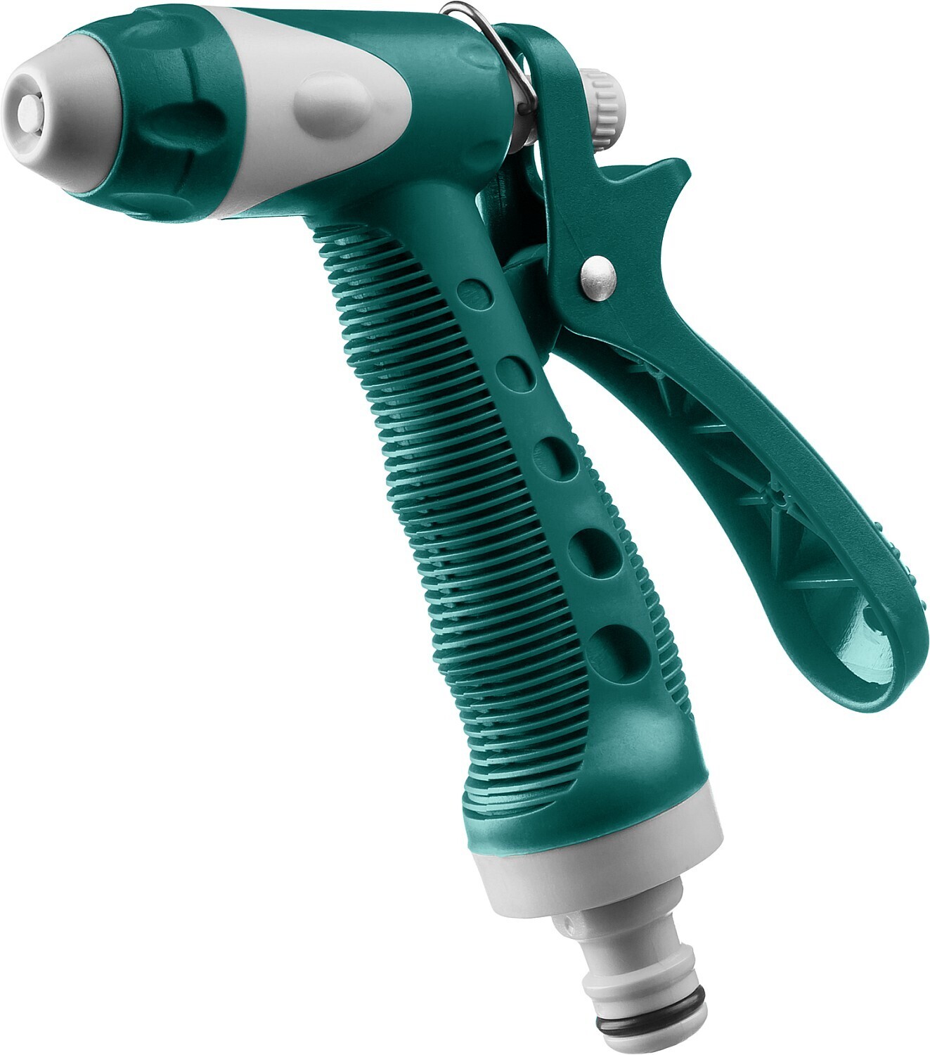 -Материал корпуса: ABS-пластик -Покрытие корпуса: резина -Тип регулировки струи: Плавная регулировка от сильной струи до распыления -Курок: сзади -Фиксатор курка: да
