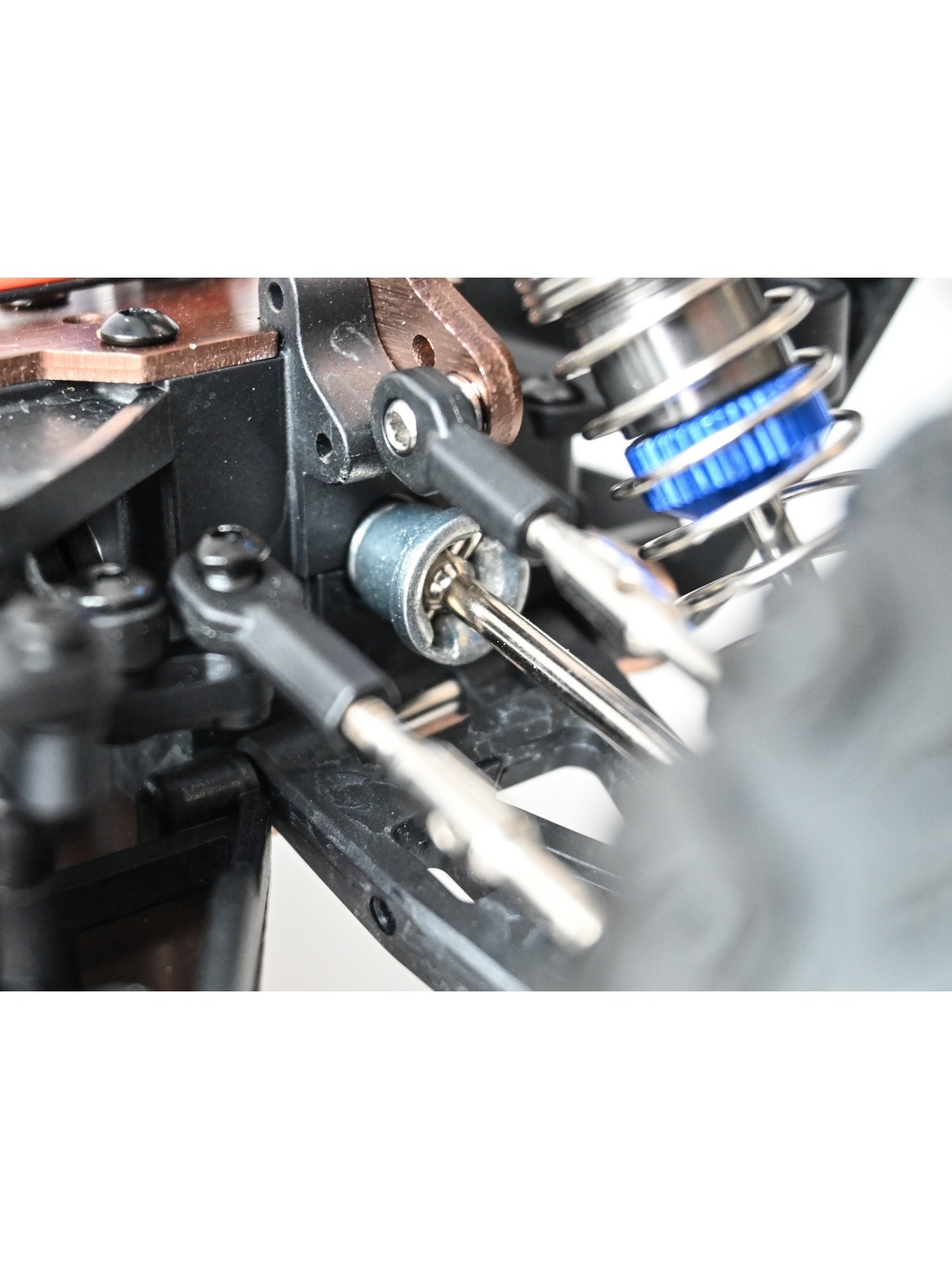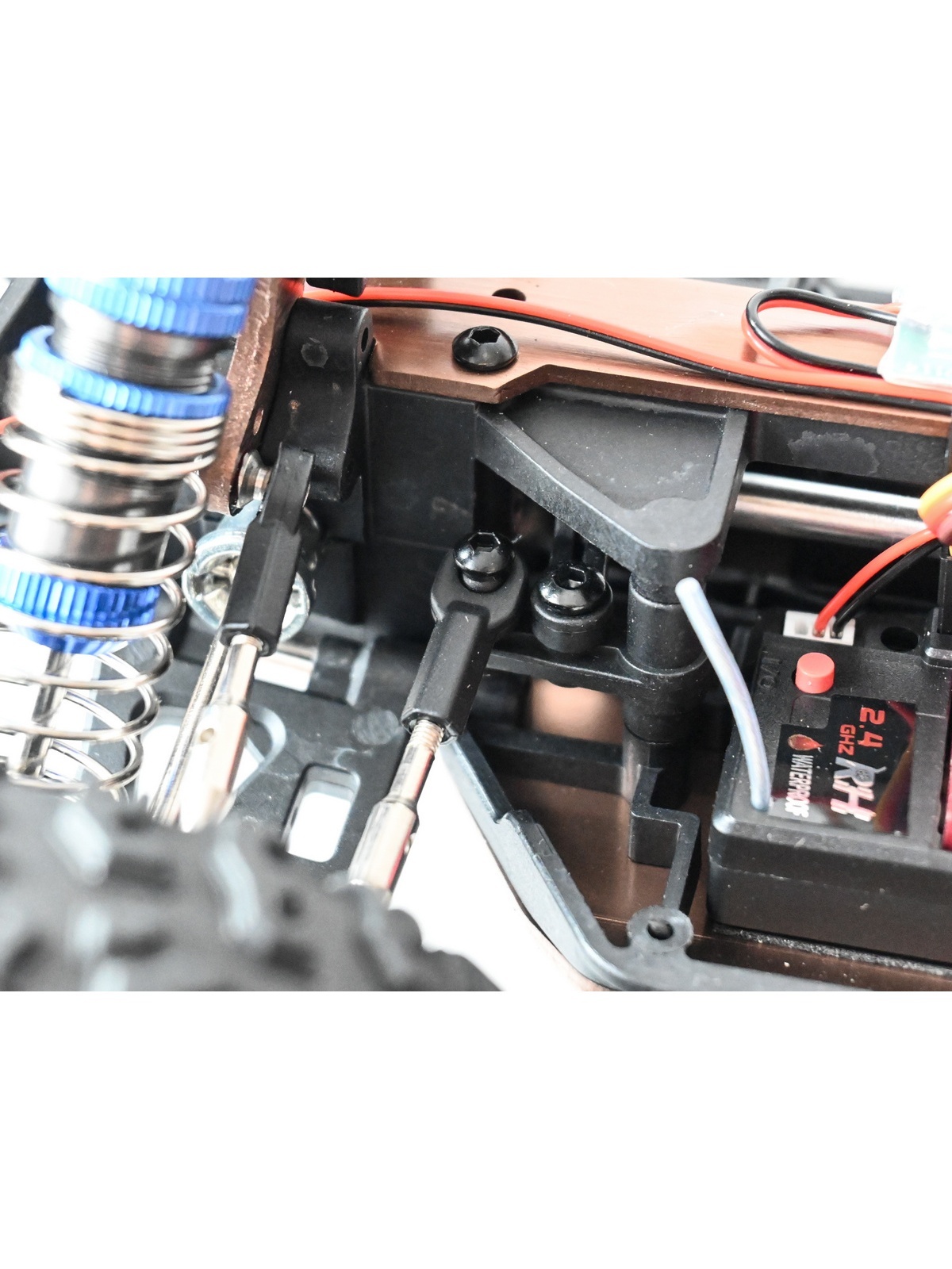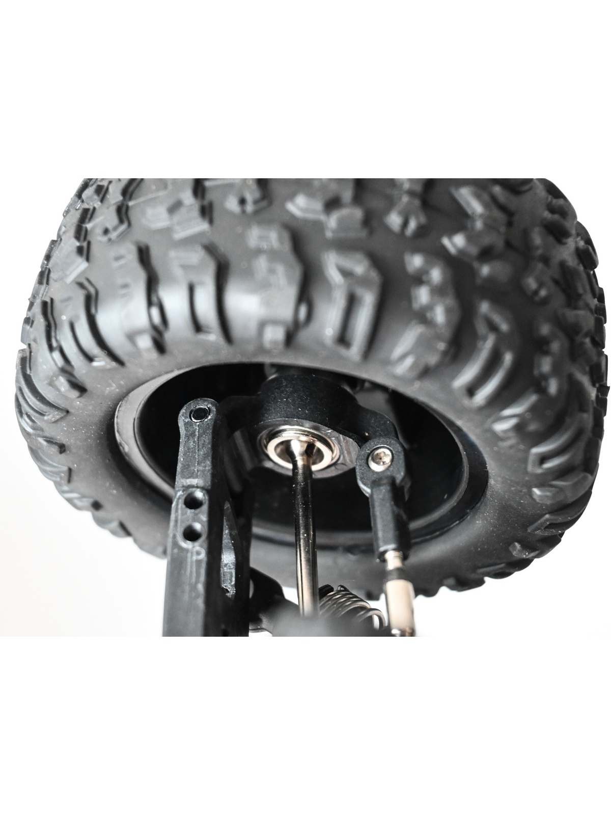 Энергоёмкая подвеска с прочными пластиковыми рычагами и пружинными амортизаторами.