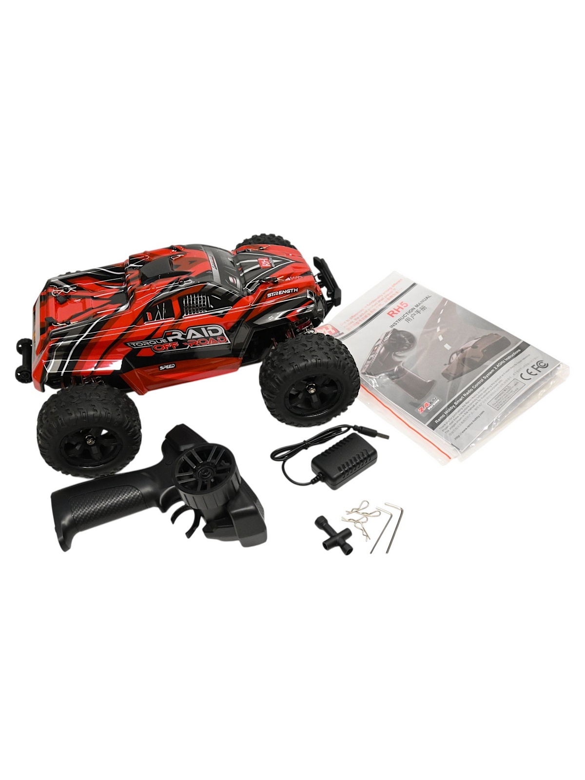 Полный привод повышает проходимость и управляемость модели. На монстр траке установлены коллекторный двигатель 390 класса и влагозащищенный приемник 3 в 1. Мощный аккумулятор Li-Ion 7.4V 1800mah, идущий в комплекте, обеспечивает большую мощность и время непрерывной работы 15-20 минут. Пульт управления на частоте 2.4Ghz позволит управлять моделью на расстоянии до 150 метров.