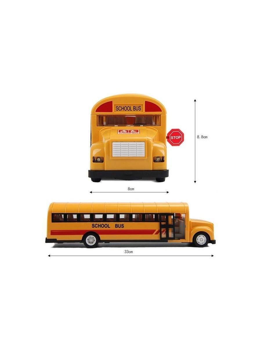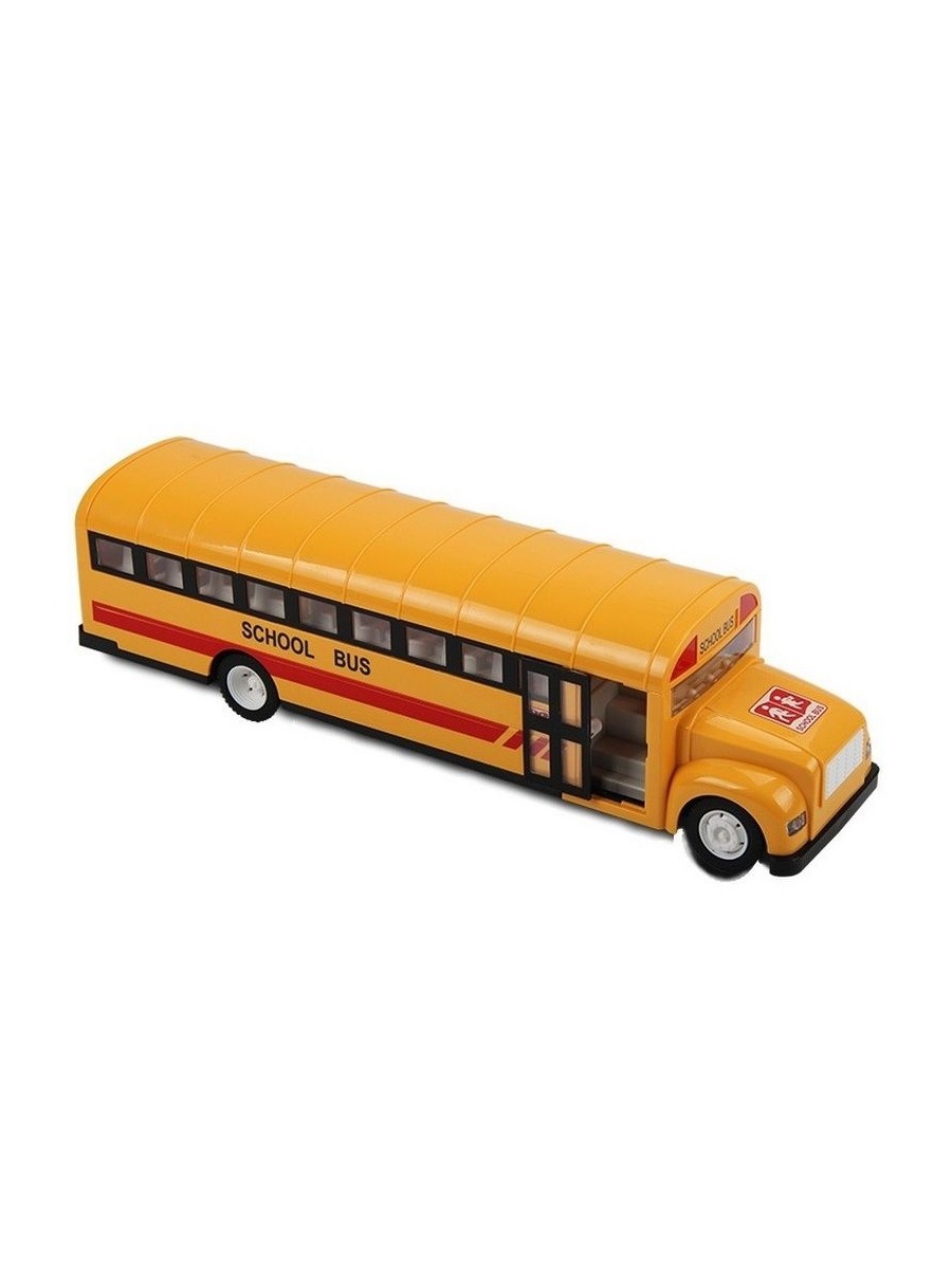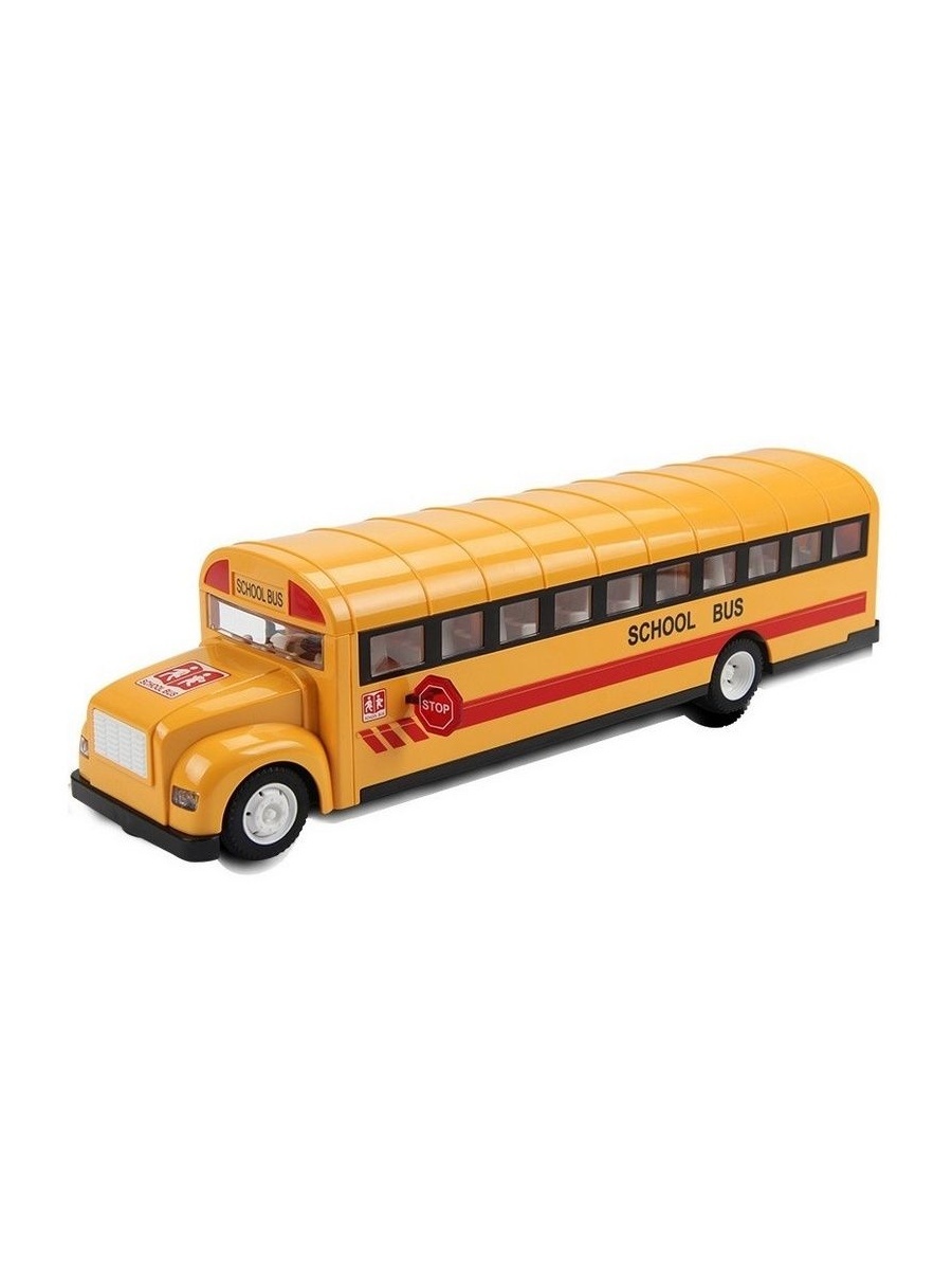 Это настоящий школьный автобус желтого цвета в масштабе 1:18. Максимальная детализация корпуса делает модель похожей на оригинал. Движение сопровождается звуками и подсветкой, поэтому очень нравится маленьким детям. Двери автобуса могут открываться и закрываться. Разместите пассажиров и можно приступать к игре.