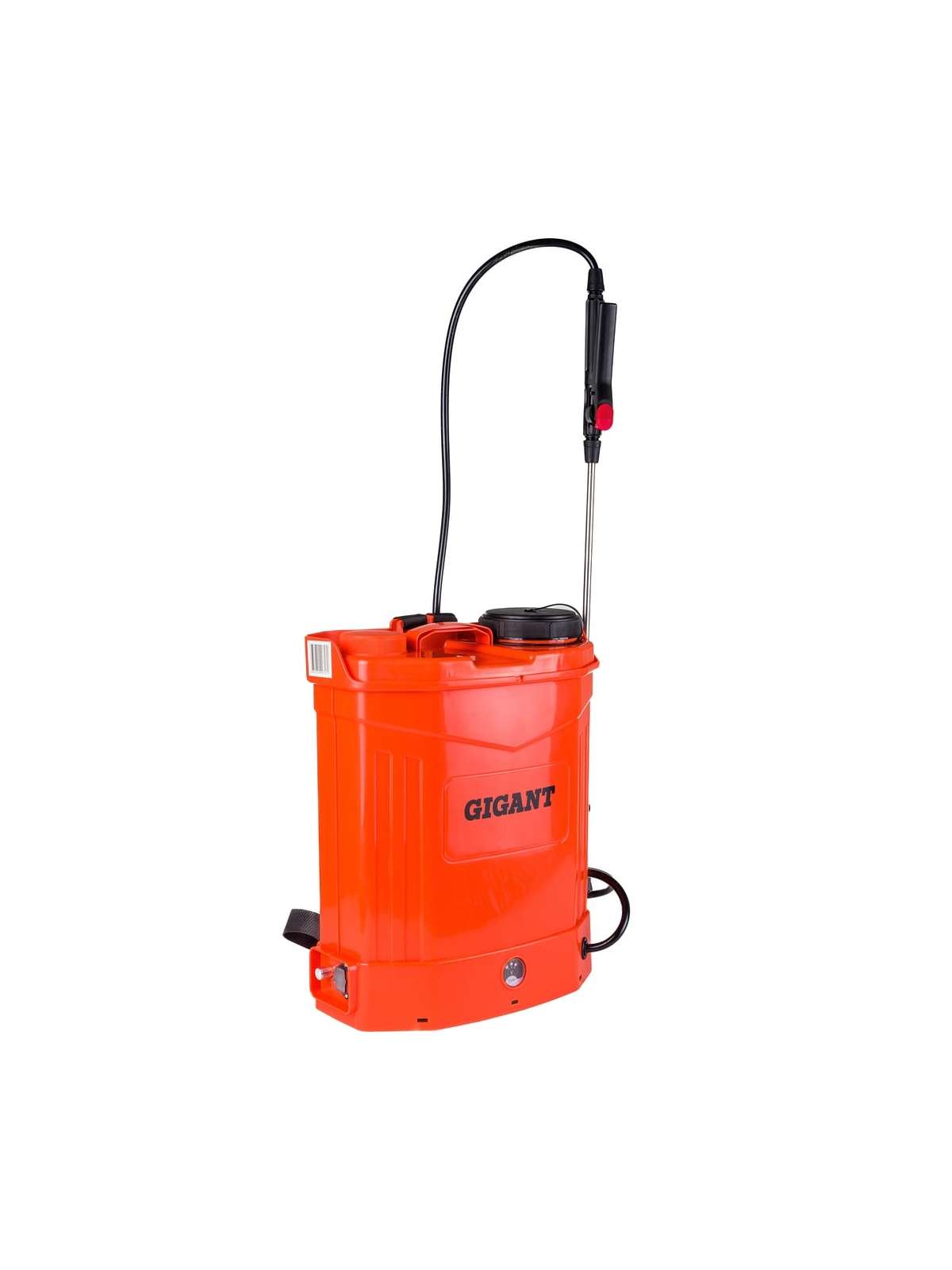 Аккумуляторный опрыскиватель Gigant используется в садоводстве для равномерного орошения растений и обработки удобрениями, в быту для мытья стен и машин. Инструмент оснащен 12 В аккумулятором, поэтому обеспечивает мобильность, с ним можно работать в поле, не привязываясь к наличию розетки и электросети. Бак вмещает 16 литров жидкости, длина шланга - 1,5 метра. Опрыскиватель служит для распыления жидких химических веществ, для направленной обработки растений и поверхностей. Предназначен для использования в сельском хозяйстве, на плантациях. Ранцевая система позволяет перемещать опрыскиватель на спине во время его использования. Внимание! Не допускать попадания влаги в крышку с вентиляционными отверстиями! Не погружать в воду до открытых контактов! Опасность поражения током! Продукция представлена профессиональными и бытовыми инструментами, имеет доступную цену и высокое качество. При изготовлении товаров Gigant используется современное оборудование и прочные материалы. Производство осуществляется на современных предприятиях России и Азии. Тестирование товаров осуществляется в два этапа, каждая партия инструментов проходит проверку на соответствие стандартам и заявленным техническим характеристикам. Это является залогом качества и надежности готового продукта. Продукция представлена широкой линейкой инструментов. У нас можно приобрести ручной инструмент, строительный, садовый, сантехнический, климатический, крепежный, автогаражный, а также станки, расходные материалы и многое другое.