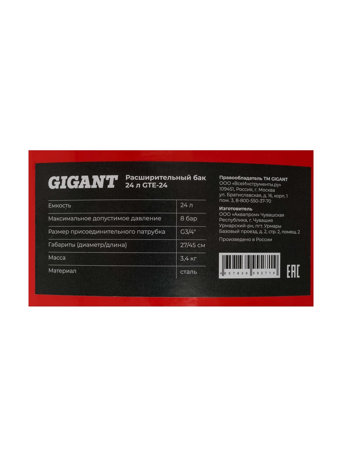 Расширительный бак 24 л Gigant GTE-24 предназначен для компенсации температурного расширения теплоносителя в замкнутых системах отопления. В качестве теплоносителя допускается использование воды или водного раствора гликоля с концентрацией до 50%.