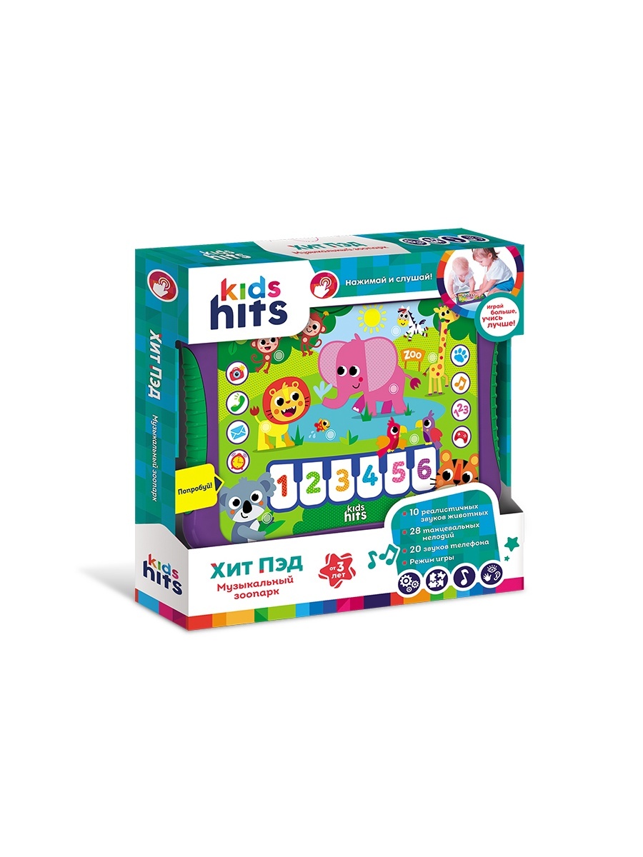 Kids Hits Хит Пэд "Музыкальный зоопарк" — это не просто игрушка, а полноценный образовательный комплект, способствующий развитию познавательных и музыкальных способностей вашего ребёнка.