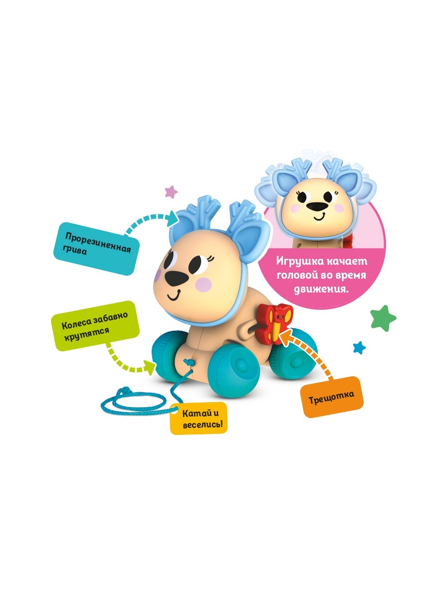 Яркая каталка Олень — это не просто игрушка, а настоящий друг для вашего малыша. С подвижной головой и трещоткой, она привлечет внимание даже самых маленьких, а тактильные прорезиненные ушки станут приятным дополнением для каждого прикосновения. Инерционный механизм обеспечивает легкость в катании и восторг во время игр.