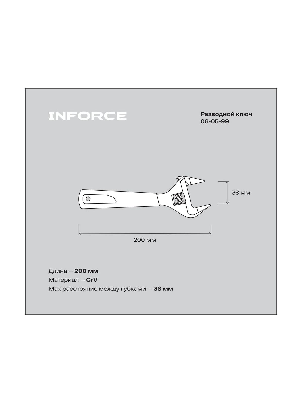 Разводной ключ с тонкими губками 200 мм Inforce 06-05-99 удобен в использовании. Инструмент охватывает сразу несколько типовых размеров. Благодаря использованию хромованадиевой стали инструмент обладает увеличенным сроком службы и повышенной защитой от коррозии.
