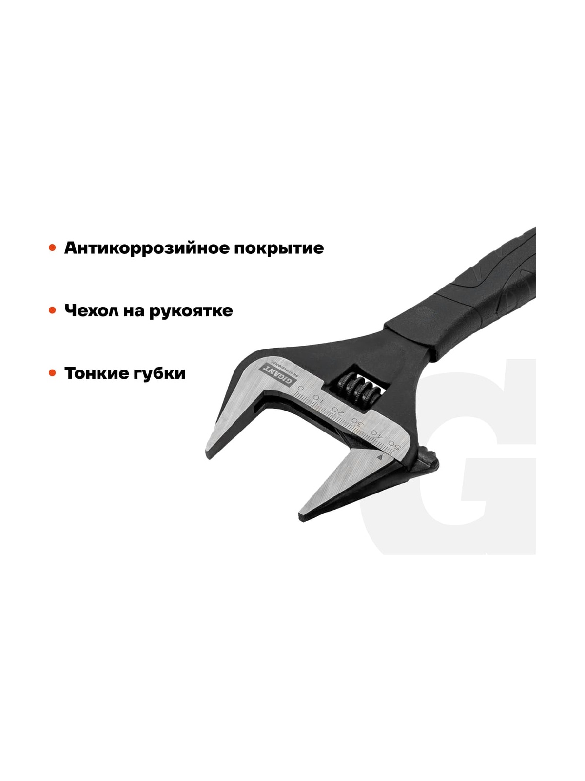 Разводной ключ с тонкими губками 250 мм Gigant Professional GPBS-25 удобен при работе со сложным крепежом, ограниченным в доступе или незначительно заглубленным. Накладка на рукоятке облегчает удержание и вращение крепежа.
