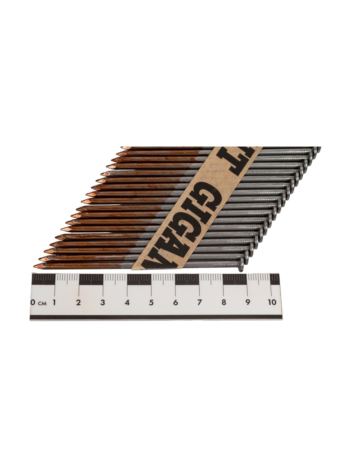 Реечный гвоздь по дереву Gigant GGR-90-3SZ используется в строительстве (сборке стропильных систем, деревянных каркасов), упаковочных работах и иных сферах. Упаковка из 2000 штук делает их экономичным выбором для крупных проектов. Расположены под углом 34 градуса, это позволяет не задевать шляпку соседнего гвоздя при монтаже и увеличивает срок службы пистолета. В комплекте 50 кассет на бумаге, в каждой кассете по 40 гвоздей. Могут использоваться с газовыми или аккумуляторными пистолетами большинства производителей, представленных на рынке (Hybest, Fubag, Зубр, Metabo и др.). Бумажная основа и клей подобраны таким образом, что кассеты не разбиваются при падении, а при монтаже бумага полностью отделяется с гвоздем и не застревает в обойме.