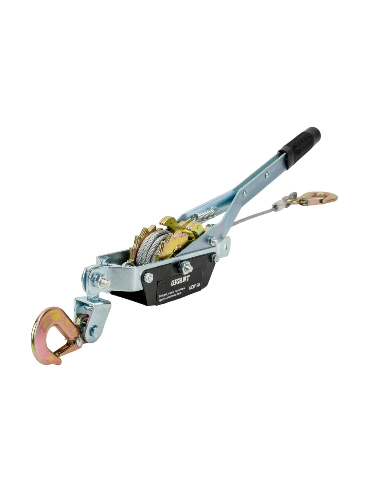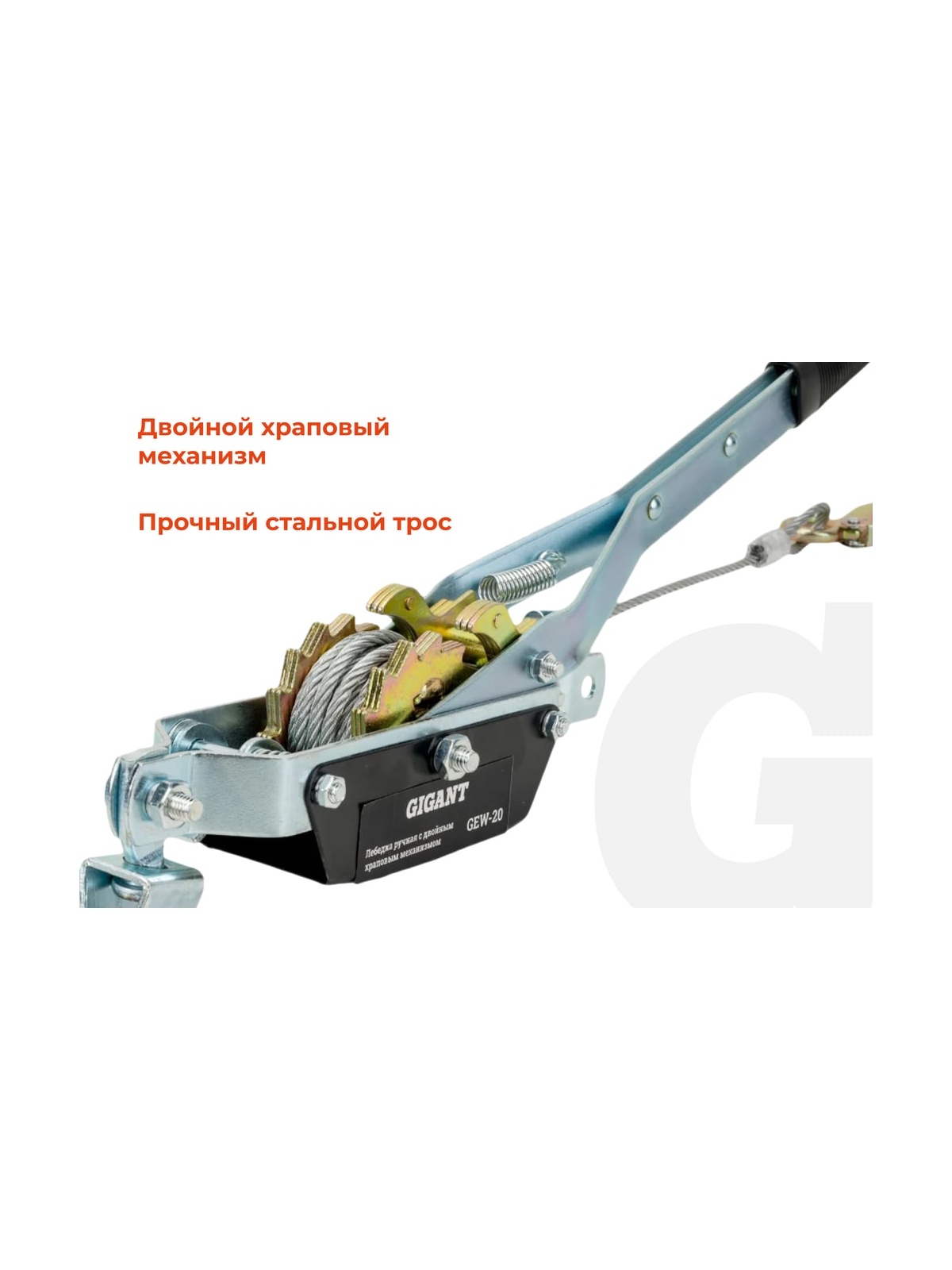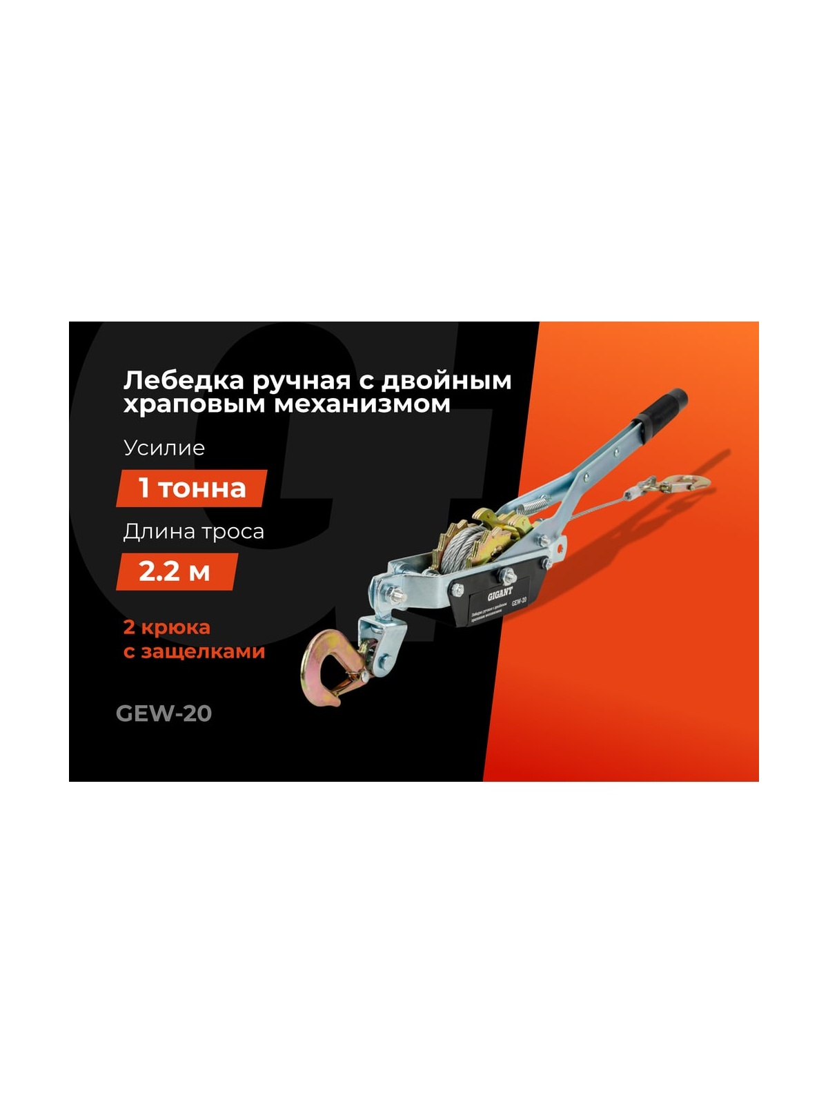 Ручная лебедка с двойным храповым механизмом 1 т Gigant GEW-20 применяется для перемещения грузов. Она пригодится в монтажно-демонтажных работах, в строительстве, в буксировке автомобилей и для бытовых нужд. Лебедка удобна для натягивания различных тросов и проводов. Она полностью автономна, может использоваться в любом пространственном положении без стационарного закрепления на месте. Двойной храповый механизм обеспечивает комфортную эксплуатацию инструмента без прикладывания дополнительных усилий. Надежность фиксации достигается наличием крюков с защелкой.