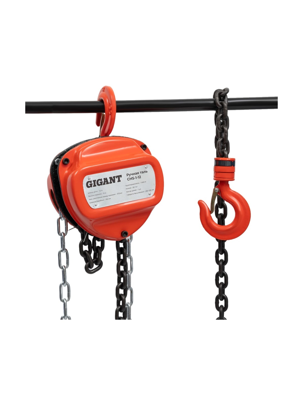 Ручная таль Gigant CHS-1-12 используется с целью вертикального подъема и перемещения габаритного груза. Подходит для эксплуатации на строительных объектах, складах, в производстве. Таль отличается простотой управления и обслуживания. Две стальных цепи выдерживают нагрузку до 1000 кг.