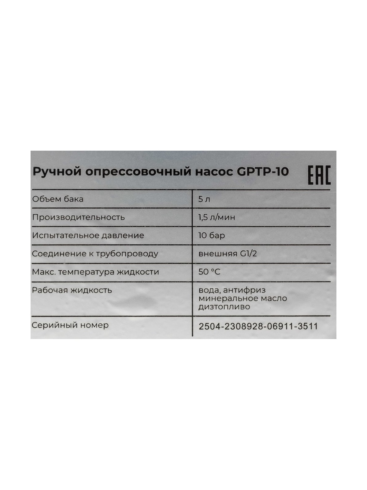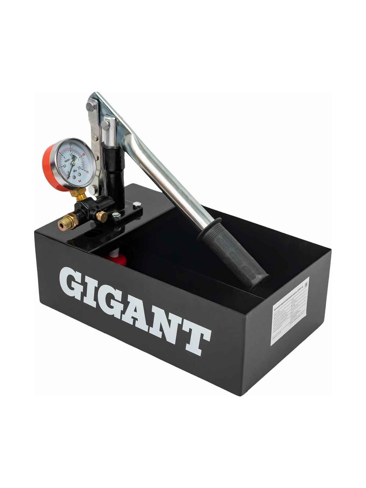 Ручной опрессовочный насос Gigant 10 бар GPTP-10 используется для проверки целостности и прочности закрытых инженерных систем. Аппарат оснащен баком объемом 5 литров для рабочей жидкости. Для точной диагностики насос оборудован манометром с измерительной шкалой до 10 бар. Благодаря фильтру грубой очистки аппарат защищен от крупных частиц, что значительно увеличивает срок службы.