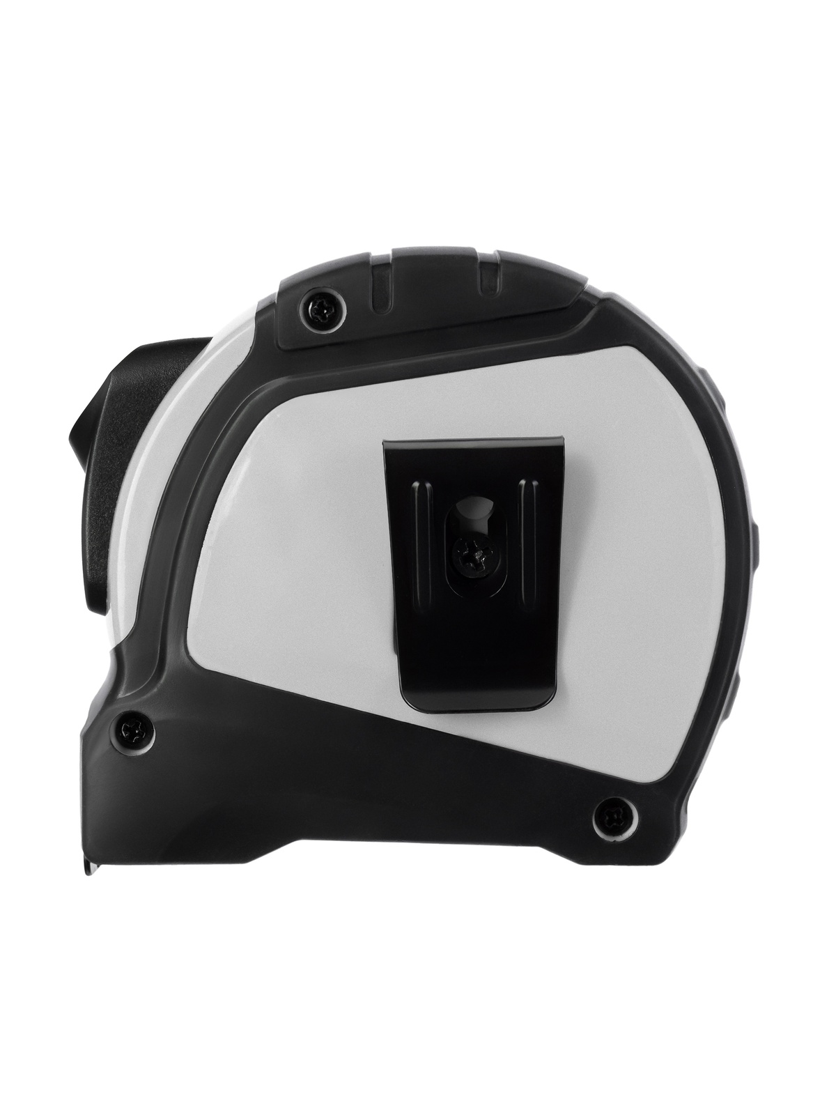 Разметка на ленту нанесена с одной стороны. Магнитный наконечник можно закрепить на металлической поверхности. Есть и классический зацеп для фиксации ленты или нанесения разметки. Механизм автоблокировки позволяет делать несколько замеров подряд – выдвинутая лента не сворачивается, пока не будет нажата кнопка на корпусе.