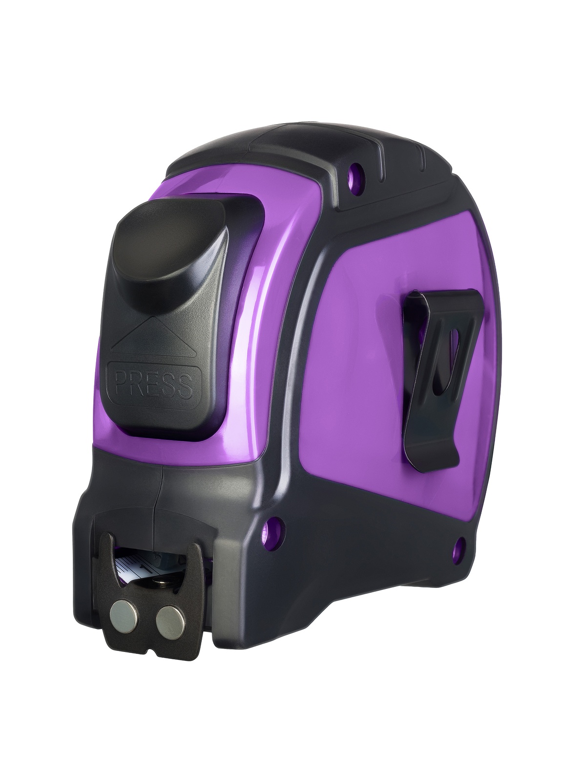 Особенности мерной ленты: двухсторонняя, с магнитным наконечником (модель в фиолетовом корпусе), односторонняя, без магнитного наконечника (модель в желтом корпусе)