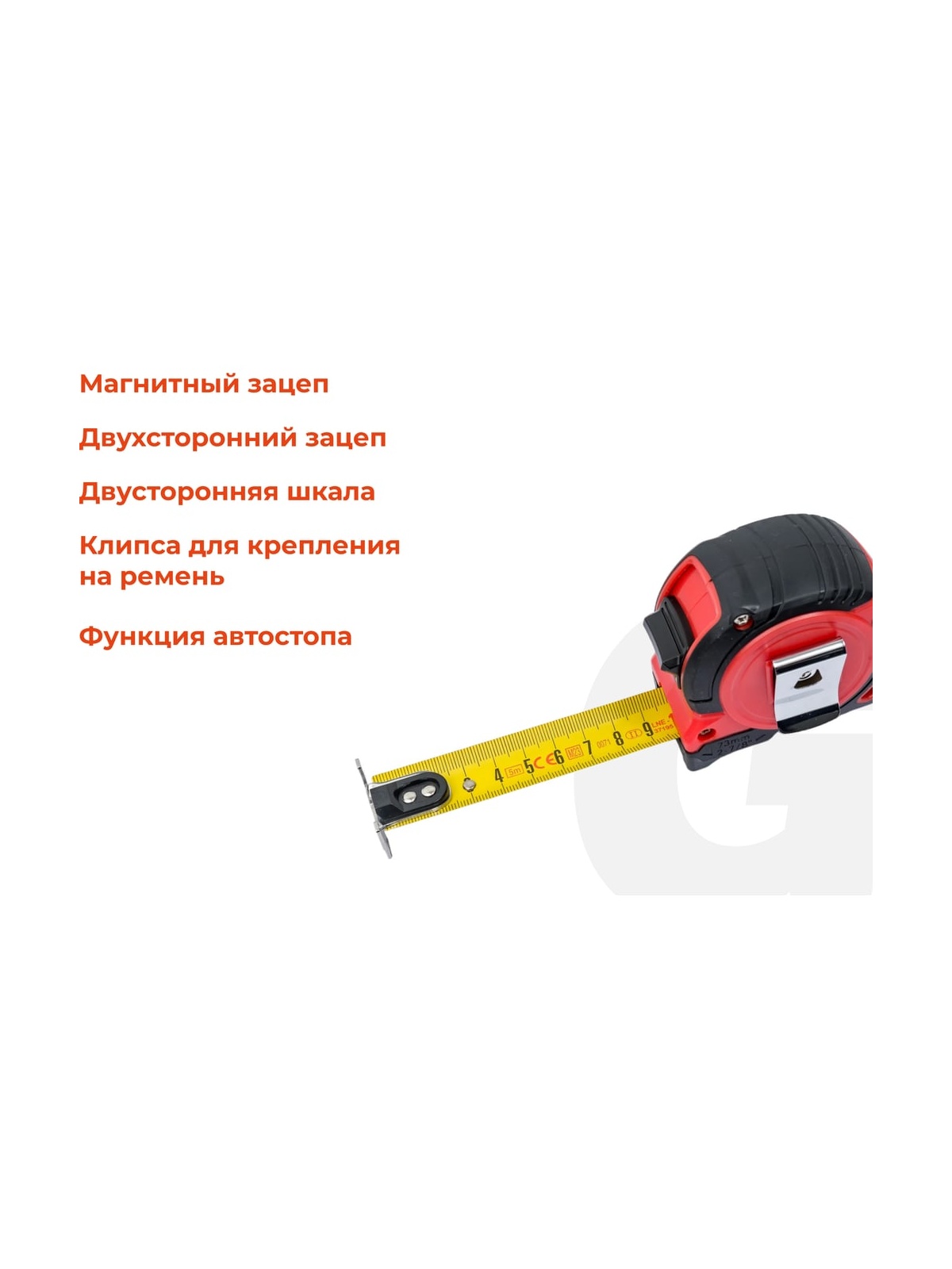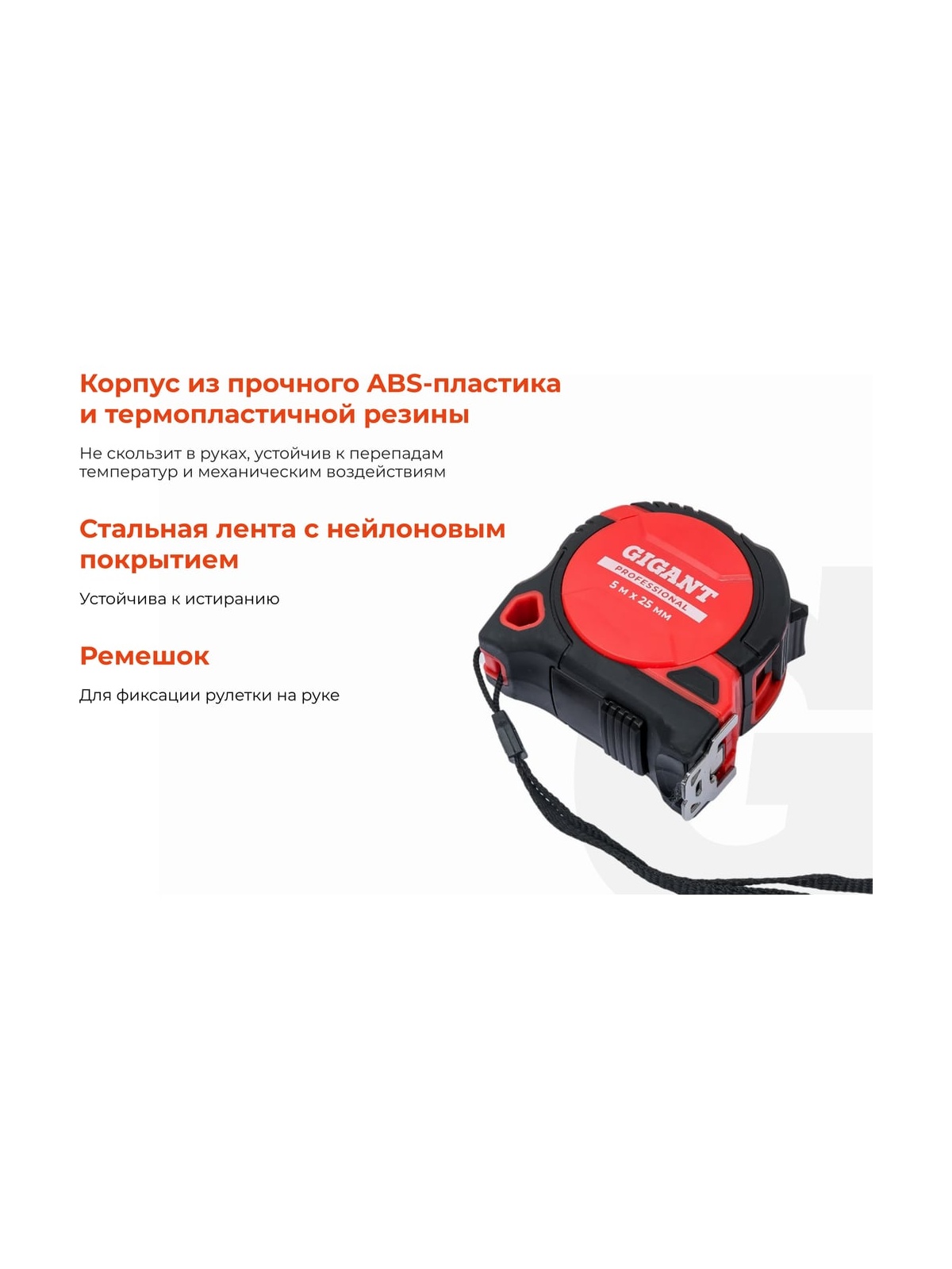 Рулетка Gigant Professional с магнитным зацепом 5м 25мм GPGW-11 пригодится во время проведения ремонтных и строительных работ. С ее помощью можно измерять заготовки, материалы, конструкции и т.д. Благодаря магнитному зацепу рулетка оптимальна для работы с металлическими поверхностями, а широкое упругое полотно удобно для выполнения измерений в труднодоступных местах. Высокая точность измерений — за счет подвижного зацепа отметка «0» всегда совпадает с краем измеряемой детали. Долговечность — нейлоновое покрытие увеличивает износостойкость ленты. Удобная эксплуатация — двойной зацеп и двухсторонняя шкала упрощают работу. Прочность и эргономичность — двухкомпонентный корпус с обрезиненным покрытием устойчив к ударному воздействию, а также удобно лежит в руке и не выскальзывает из ладони.