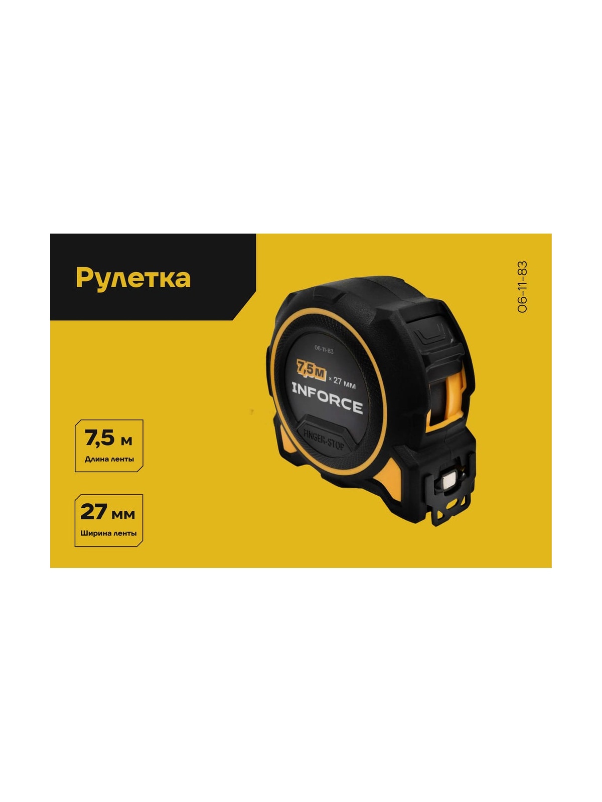 Рулетка Inforce 7.5 м x 27 мм 06-11-83 пригодится во время проведения ремонтных и строительных работ. С ее помощью можно измерять заготовки, материалы, конструкции и т.д. Благодаря магнитному зацепу рулетка оптимальна для работы с металлическими поверхностями, а широкое упругое полотно удобно для выполнения измерений в труднодоступных местах.