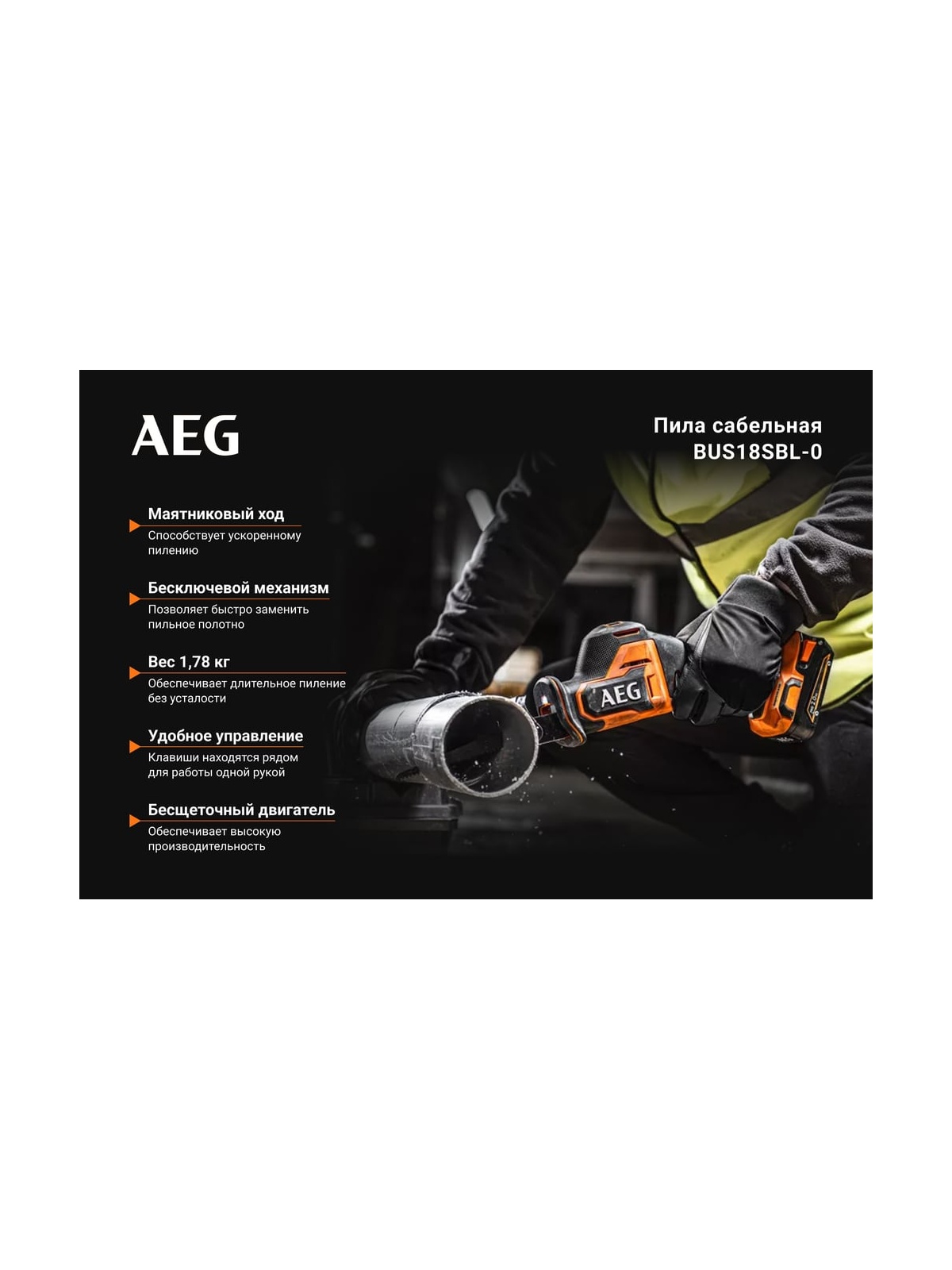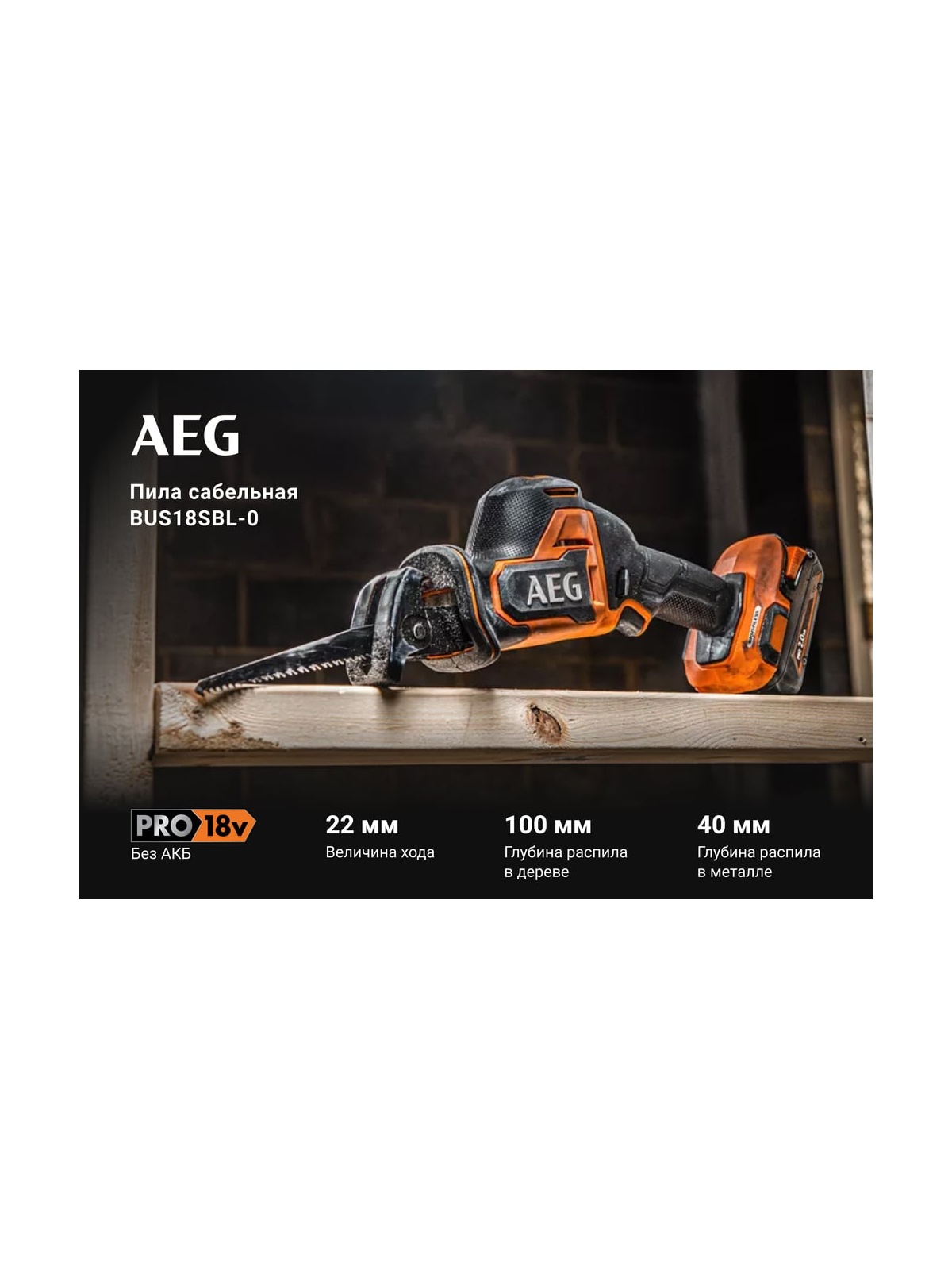 Сабельная бесщеточная пила BUS18SBL-0 AEG 4935479662 позволяет работать одной рукой и идеальна для выполнения работы в условиях ограниченного пространства. Бесщеточный двигатель PROFLUX™ и электроника Coretek обеспечивают впечатляющие мощность и продолжительность работы. Эластичное покрытие корпуса двигателя позволяет так же комфортно работать двумя руками. 22 мм ход пильного полотна позволяет работать эффективно. 3200 дв/мин позволяют резать как арматуры, так и листовой металл быстро и аккуратно. Бесключевой механизм фиксации оснастки позволяет быстро производить ее замену. Совместима с системой PRO18B. Макс. режущая способность в пластике: 75 мм