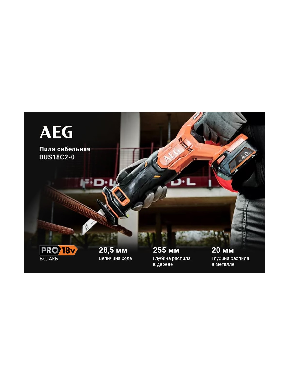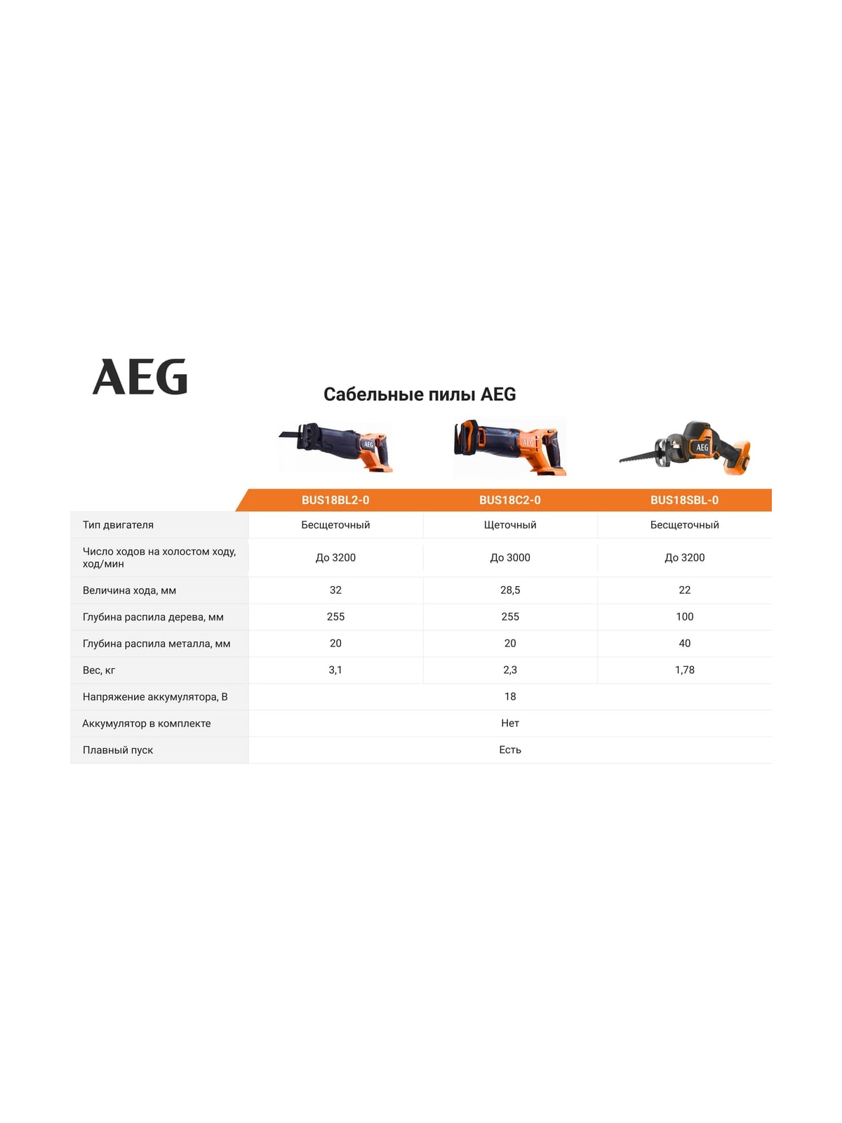 Сабельная пила AEG BUS18C2-0 4935478942 оснащена щеточным двигателем, который обеспечивает скорость работы до 3000 дв/мин. Ход пильного полотна 28.5 мм обеспечивает высокую скорость резания. Бесключевой механизм замены пильных полотен. Совместима с аккумуляторами AEG PROLITHIUMION™ (приобретаются отдельно) обеспечивающими защиту от перегрузки для увеличения срока службу как аккумулятора, так и инструмента.