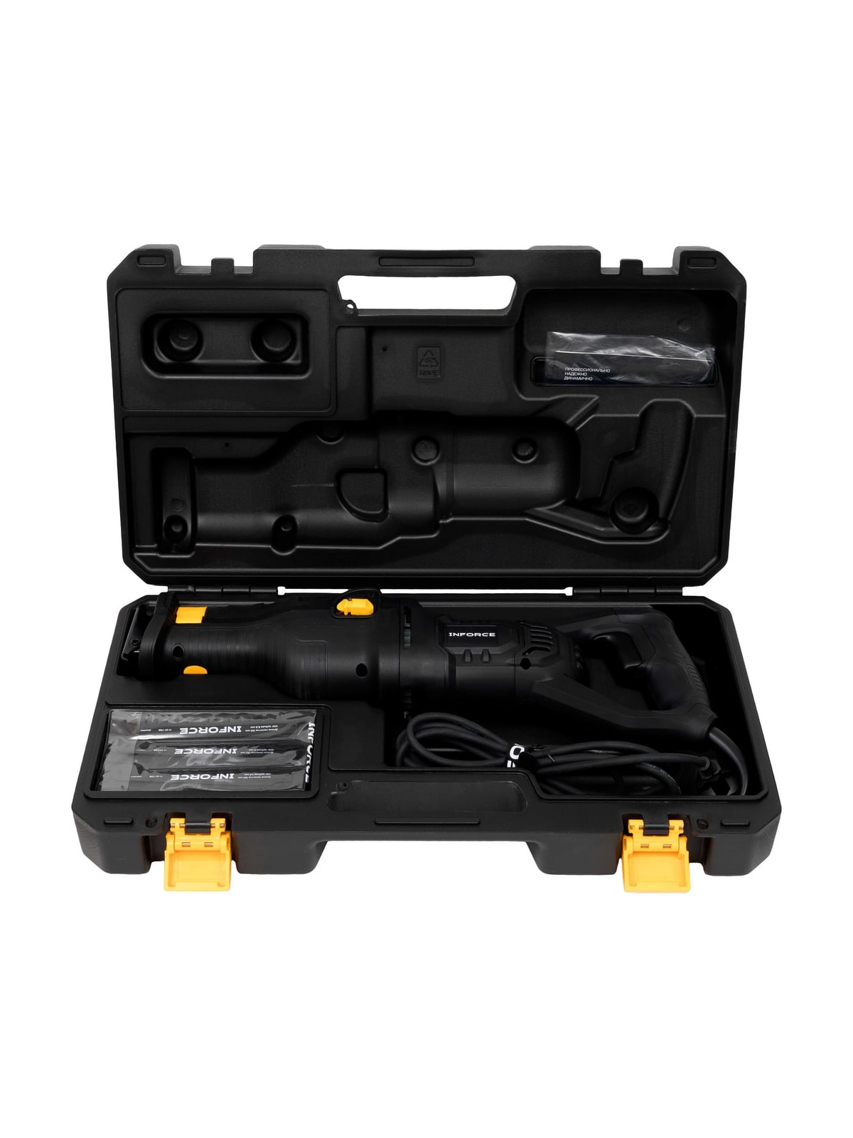 Inforce RS2115V - это профессиональная сабельная пила с высокой мощностью и бесключевой заменой пильных полотен. Глубина нажатия на пусковую кнопку определяет скорость работы. Есть 3 режима маятникового хода и 1 режим без него для разных типов древесины, металла и пластика. Прорезиненный корпус и рукоятка. Поставляется в ударопрочном пластиковом кейсе для транспортировки и безопасного хранения пильных полотен.