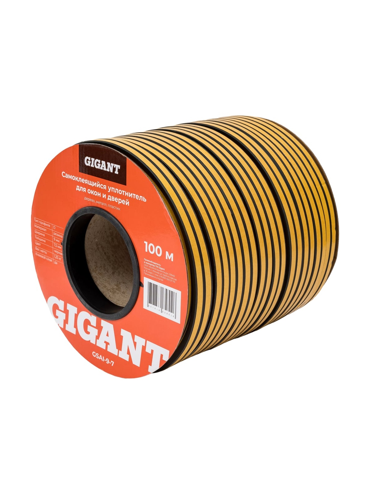 Самоклеящийся уплотнитель Gigant D100 9х7,4 мм черный GSAI-9-7 представляет собой универсальное решение для улучшения герметичности окон и дверей. Изготовленный из качественной резины, он обеспечивает надежное прилегание к различным поверхностям, включая дерево, металл и пластик. Профиль типа D способствует эффективному снижению проникновения сквозняков и шума, что делает его идеальным для использования в жилых и коммерческих помещениях. Уплотнитель имеет ширину 9 мм и толщину 7,5 мм, что позволяет ему легко адаптироваться к различным зазорам. Длина рулона составляет 100 метров, что обеспечивает экономичное использование материала.