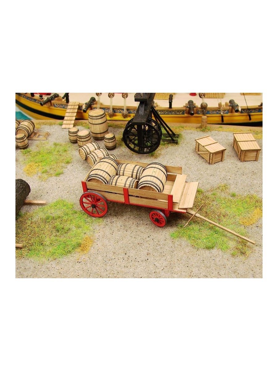 Телега для подвозки грузов на корабли от польской фирмы Shipyard. В комплекте две бочки.