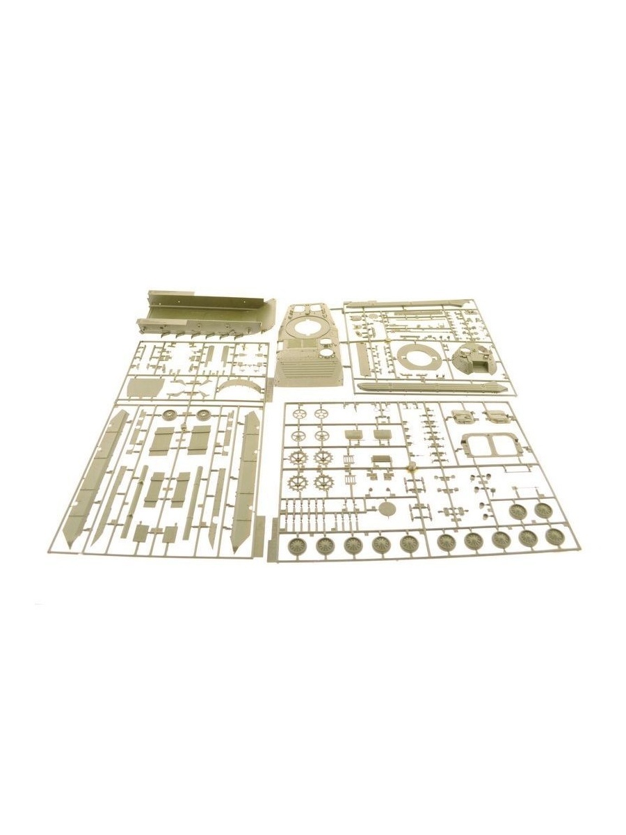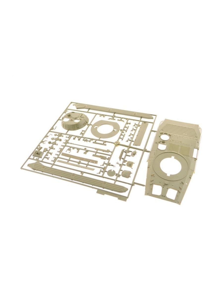 Комплект деталей из пластмассы для сборки одной модели.Детализированные корпус и башня, люки выполнены отдельными деталями.