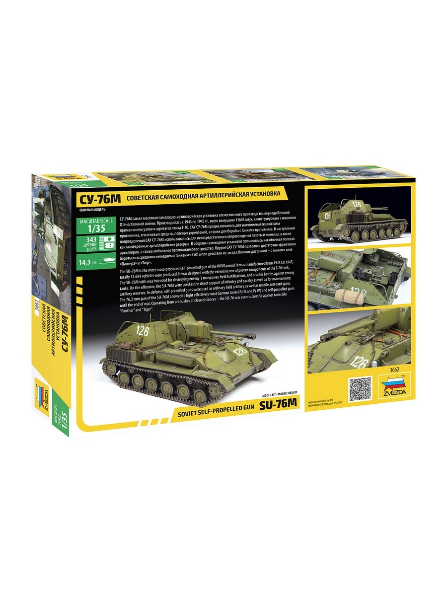 СУ-76М самая массовая самоходно-артиллерийская установка отечественного производства периода Великой Отечественной войны. Производилась с 1943 по 1945 гг., всего выпущено 13684 штук, сконструирована с широким применением узлов и агрегатов танка Т-70. САУ СУ-76М предназначалась для уничтожения живой силы противника, его огневых средств, полевых укреплений, а также для борьбы с танками противника. В наступлении подразделения САУ СУ-76М использовались для непосредственного сопровождения пехоты и конницы, а также как манёвренные артиллерийские резервы. В обороне самоходные установки применялись как обычная полевая артиллерия, а также мобильное противотанковое средство. Орудие САУ СУ-76М позволяло достаточно эффективно бороться со средними немецкими танками и САУ, а при действии из засад с близких дистанций – с танками типа «Пантера» и «Тигр».