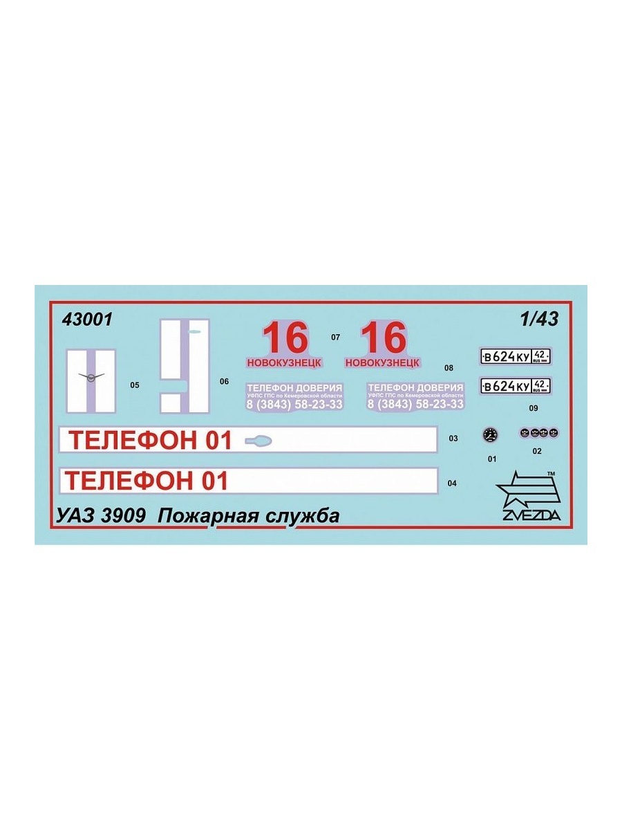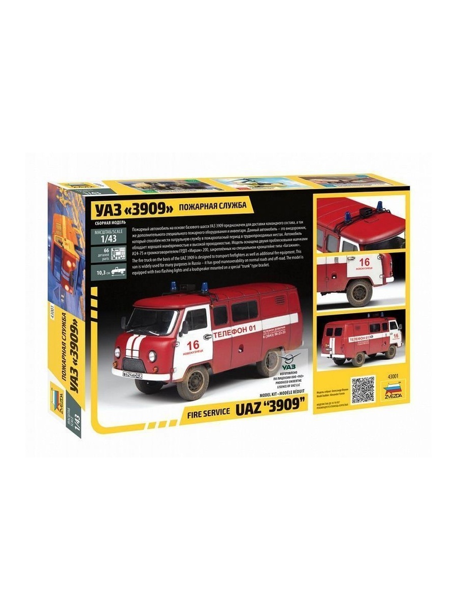 комплект пластиковых деталей для сборки модели автомобиля «Буханка» УАЗ 3909 «Пожарная служба»инструкция по сборке