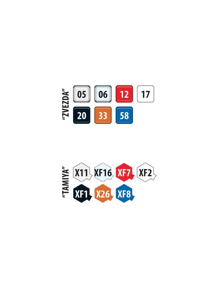 XF-1 - черный матовый (Flat Black)XF-2 - белый матовый (Flat White)