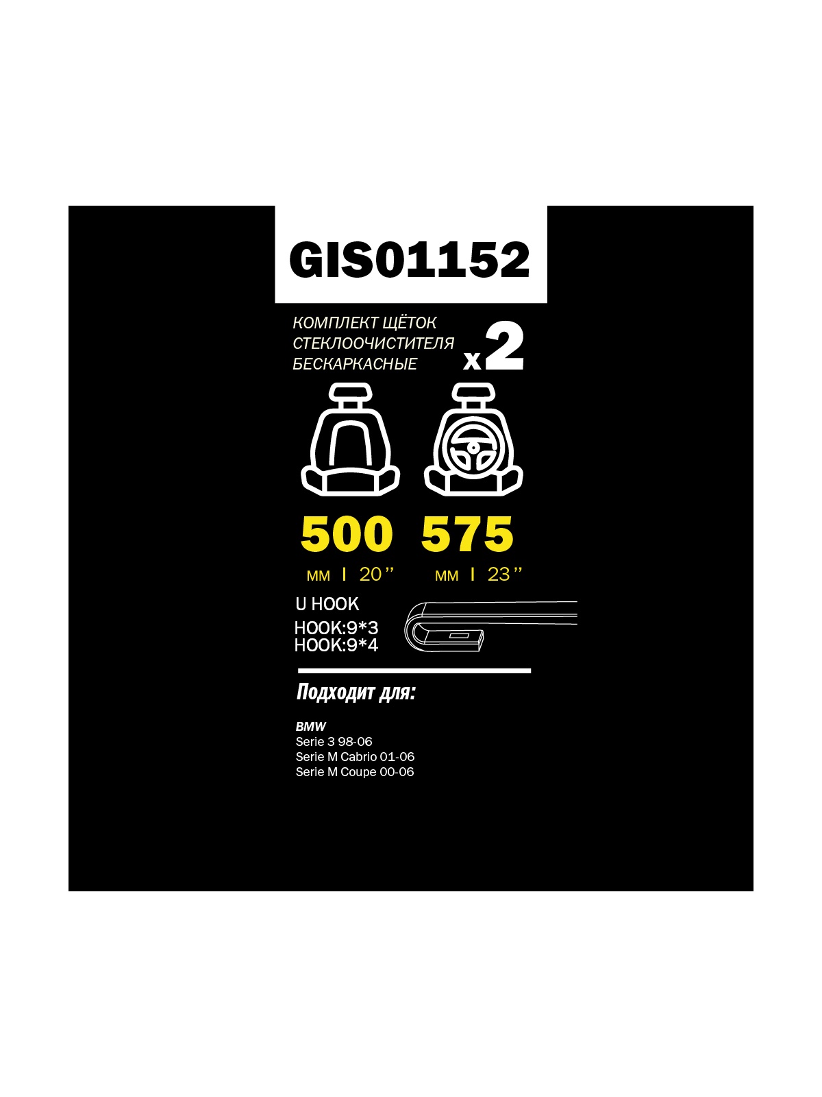 Щетка стеклоочистителя 575/500 мм бескаркасная комплект 2 шт BMW E46 GANZ PRO-LINE GIS01152.