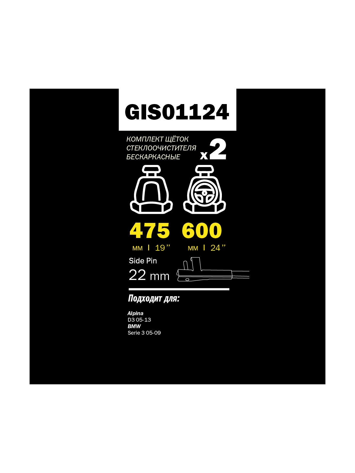 Щетка стеклоочистителя 600/475 мм бескаркасная комплект 2 шт BMW: 3 series E90 GANZ PRO-LINE GIS01124.