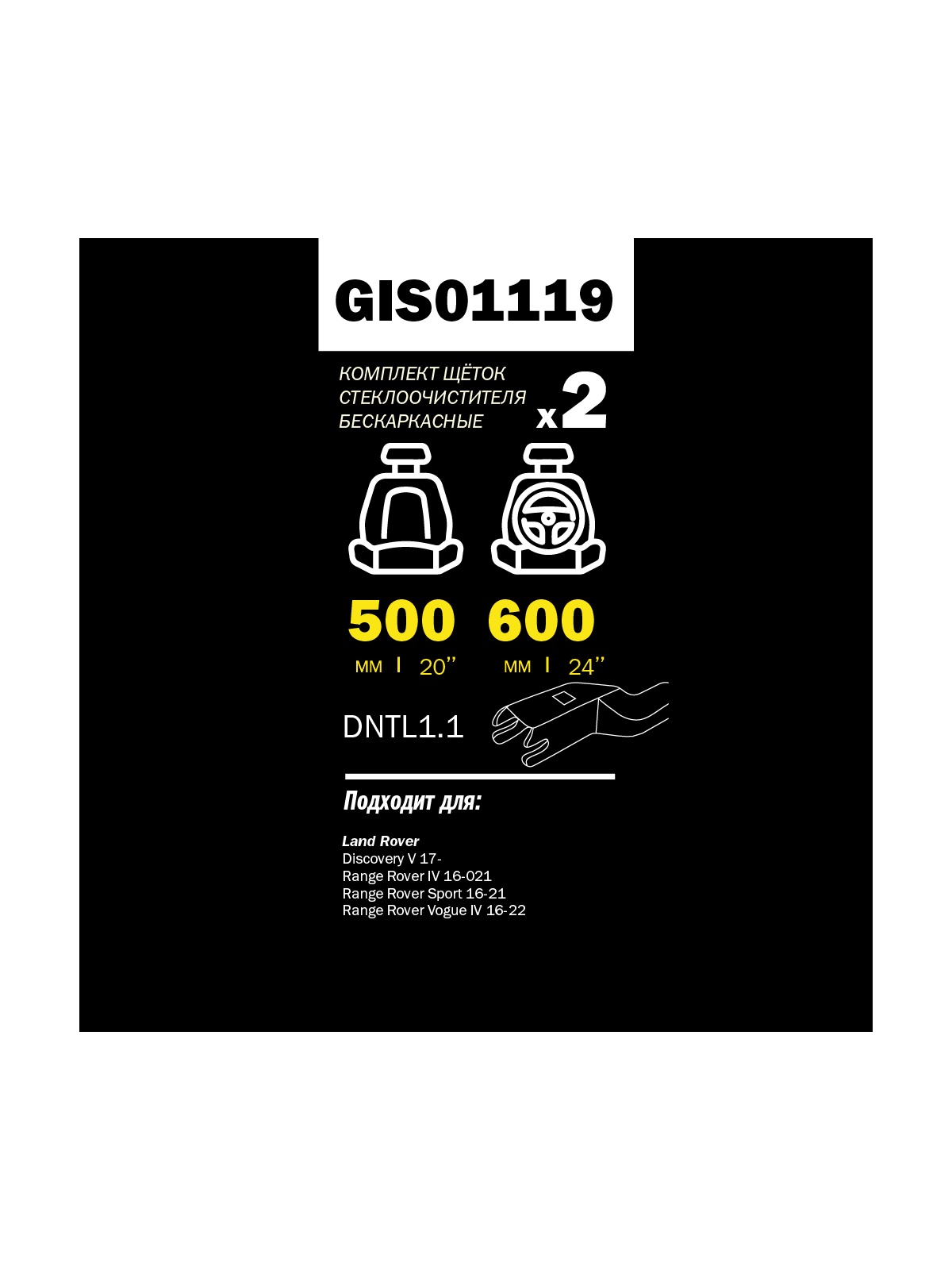Щетка стеклоочистителя 600/500 мм бескаркасная комплект 2 шт LAND ROVER Discovery V 16->/RR IV/RR Sport II 14-> GANZ PRO-LINE GIS01119.
