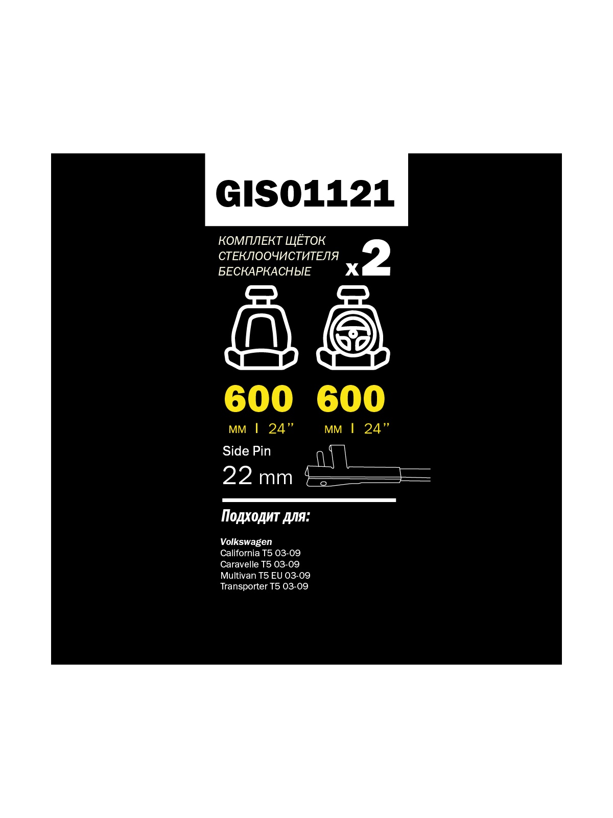 Щетка стеклоочистителя 600/600 мм бескаркасная комплект 2 шт MB VW T5 5/03-> GANZ PRO-LINE GIS01121.