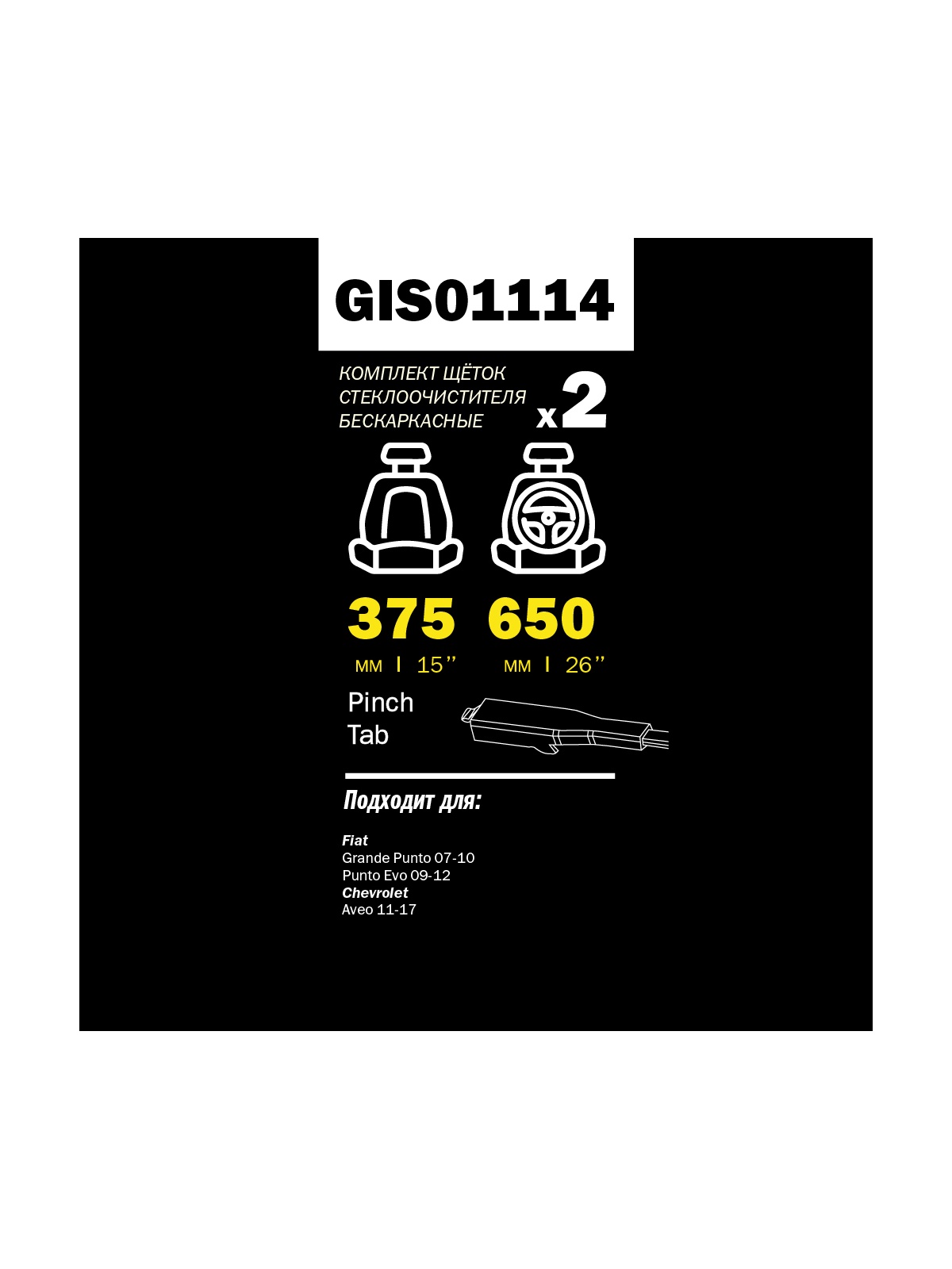 Щетка стеклоочистителя 650/375 мм бескаркасная комплект 2 шт CHEVROLET Aveo хэтчбек III (T300) GANZ PRO-LINE GIS01114.