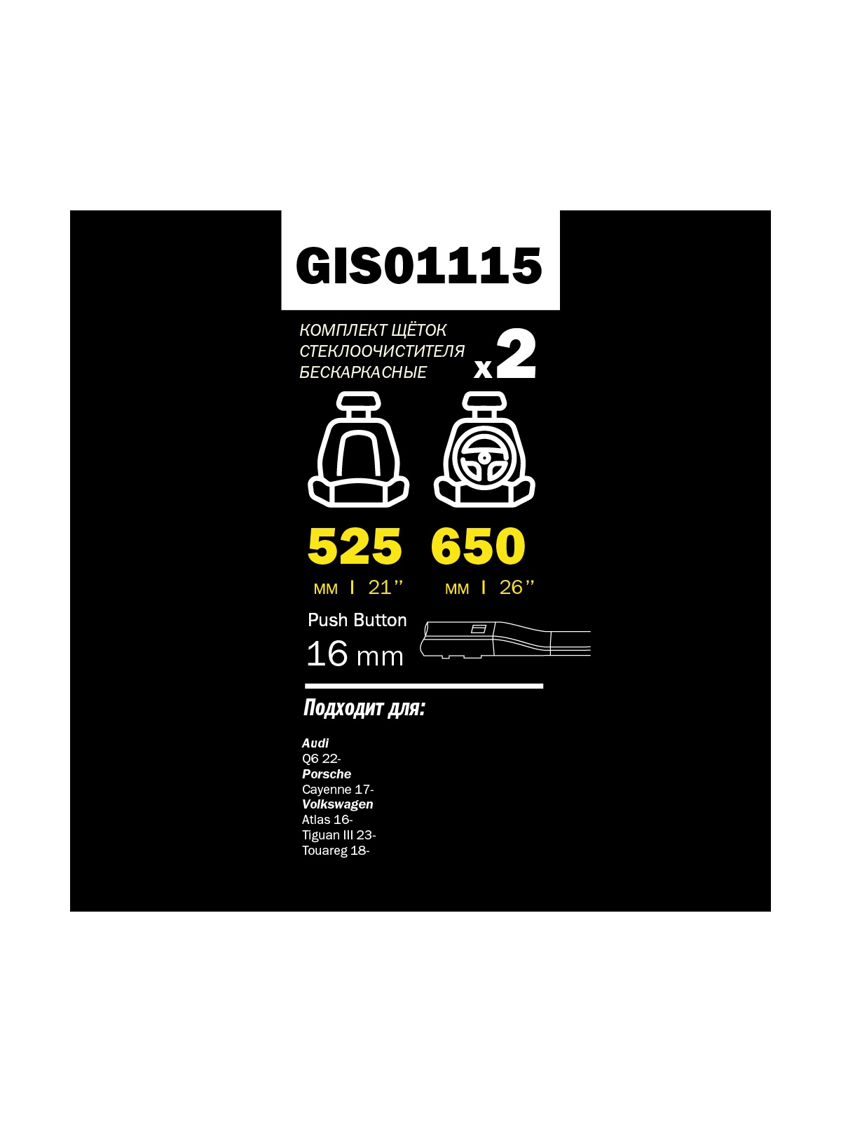 Щетка стеклоочистителя 650/525 мм бескаркасная комплект 2 шт PORSCHE Cayenne III/VW Touareg III 2018-> GANZ PRO-LINE GIS01115.