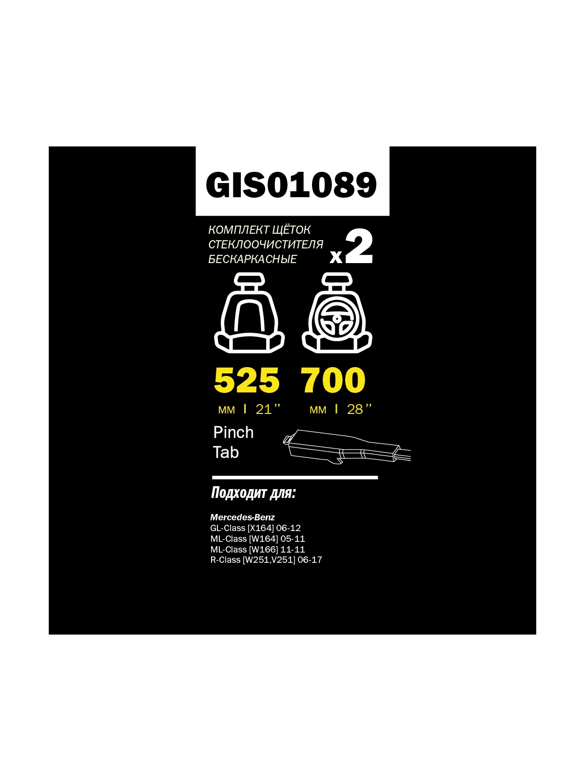 Щетка стеклоочистителя 700/525 мм бескаркасная комплект 2 шт MB W164 /W251 GANZ PRO-LINE GIS01089.
