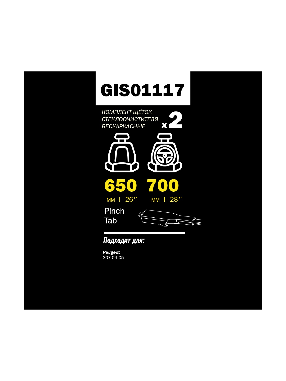 Щетка стеклоочистителя 700/650 мм бескаркасная комплект 2 шт PEUGEOT 307 10/04- GANZ PRO-LINE GIS01117.