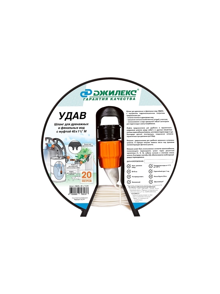 Катушка, идущая в комплекте, обеспечивает удобное хранение шланга.