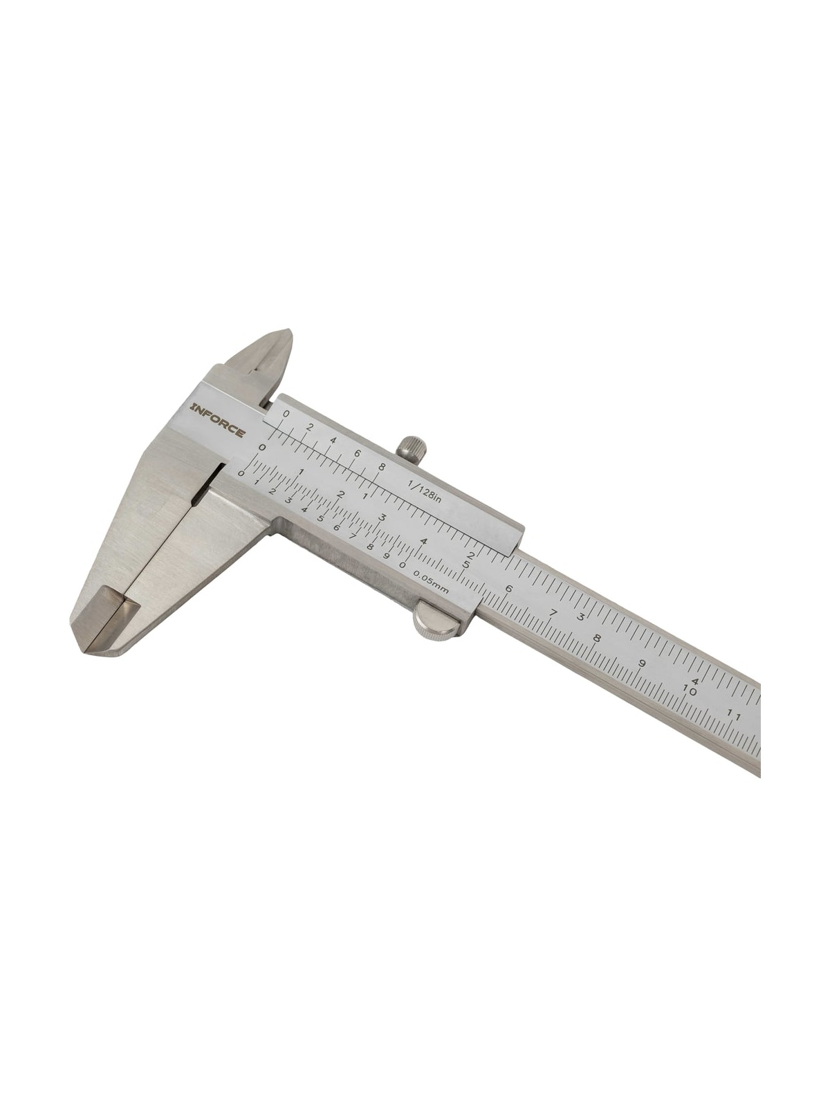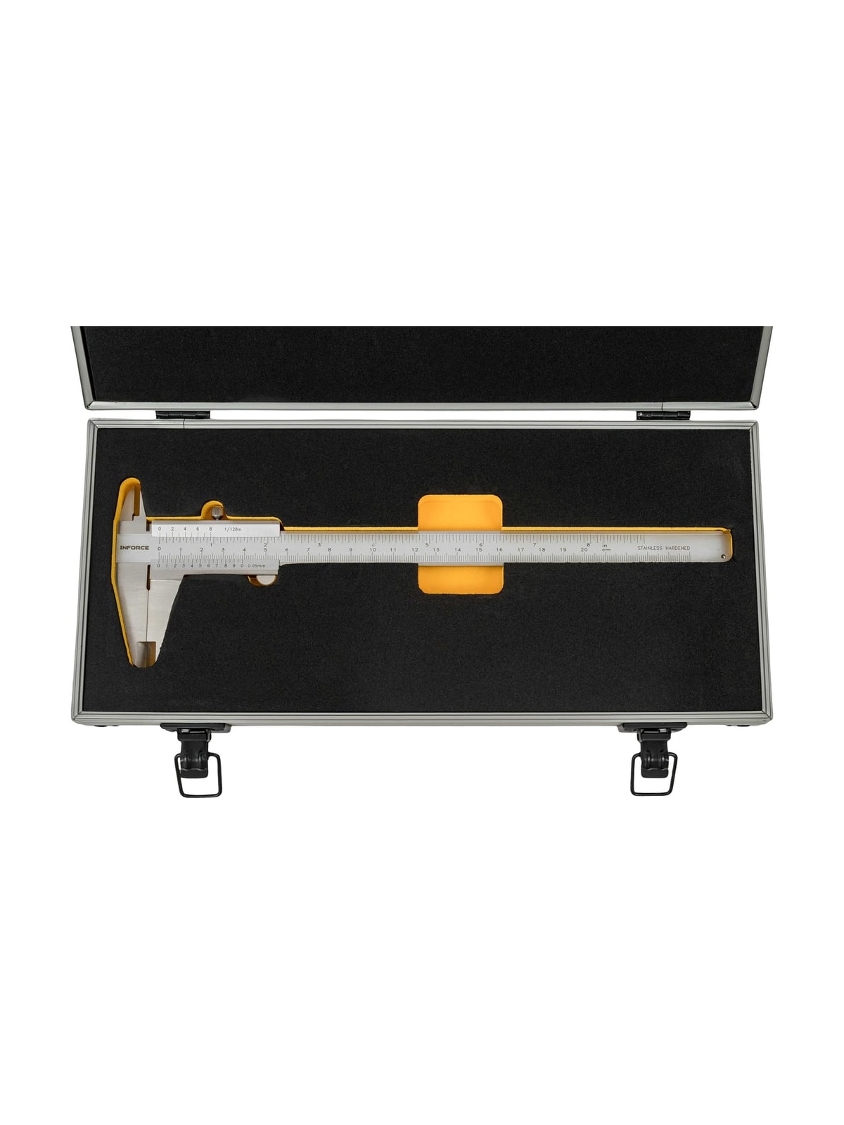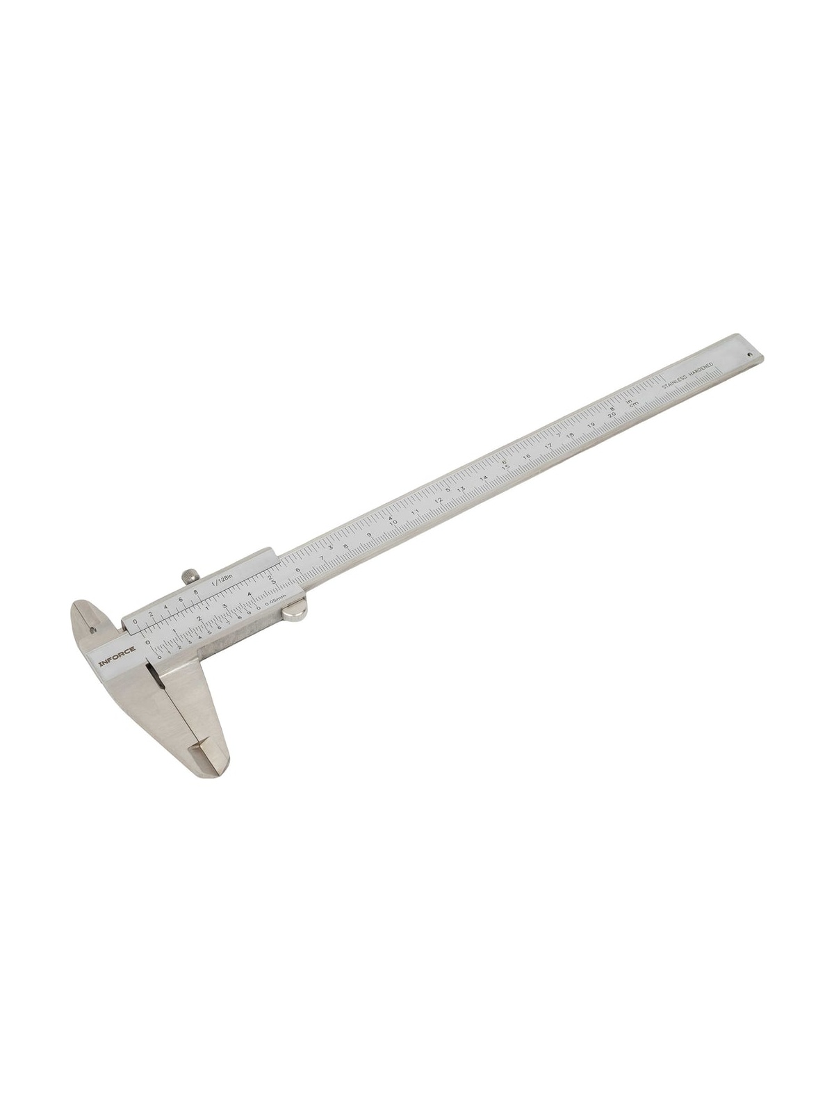 Штангенциркуль 0-200 мм Inforce 06-11-37 - это качественный и надёжный измерительный инструмент с размером шага 0.05 мм. Погрешность измерения инструмента - 0.03 мм. Линейка у этой модели выдвигается и убирается при перемещении рамки. Инструмент полностью соответствует всем мировым и внутренним калибровочным и поверочным стандартам.
