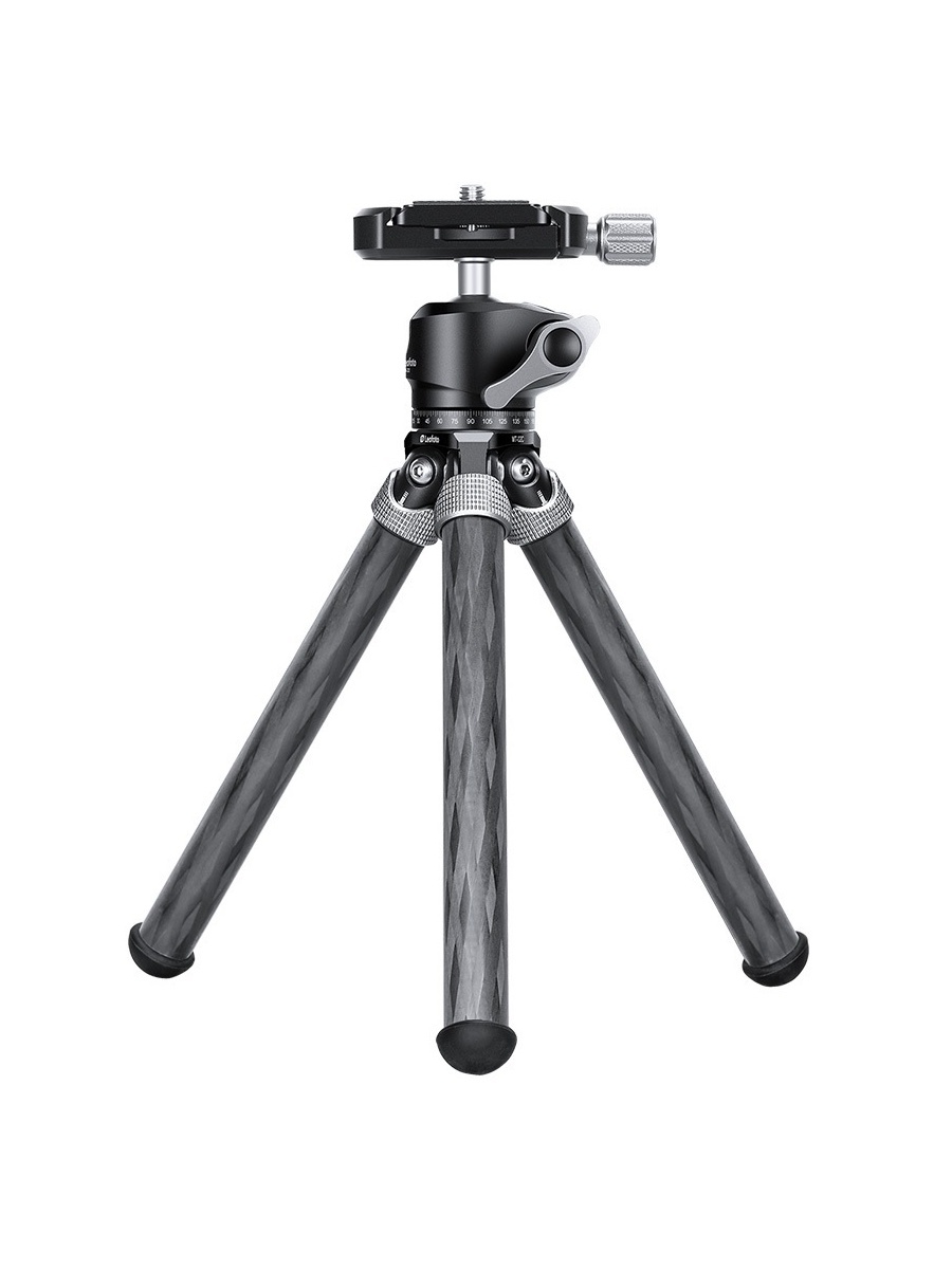 Штатив Leofoto MT-02+LH-22 CARBON изготовлен из алюминиевого сплава. Благодаря компактным размерам и простой конструкции штативом легко пользоваться. При общей длине 213 мм минимальная рабочая высота составляет 85 мм, максимальная высота в рабочем положении 200 мм. Установить камеру можно непосредственно на штатив с помощью штатного винта 1/4". Leofoto LH-22 шаровая штативная голова с быстросъемной площадкой и поворотным основанием для горизонтального панорамирования, предназначена для установки камер весом до 5 кг, Штативная голова изготовлена из легкого и прочного алюминиевого сплава и весит 0,177 кг. Покрытие элементов конструкции выполнено методом глубокого анодирования и отличается высокой твердостью. Все шкалы на головке нанесены лазером, в отличие от краски такой способ нанесения гораздо устойчивее к истиранию. Максимальная нагрузка на штатив, 5 кг.