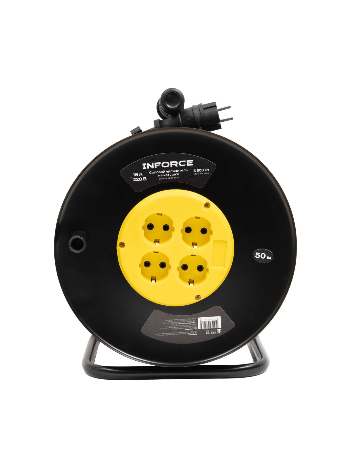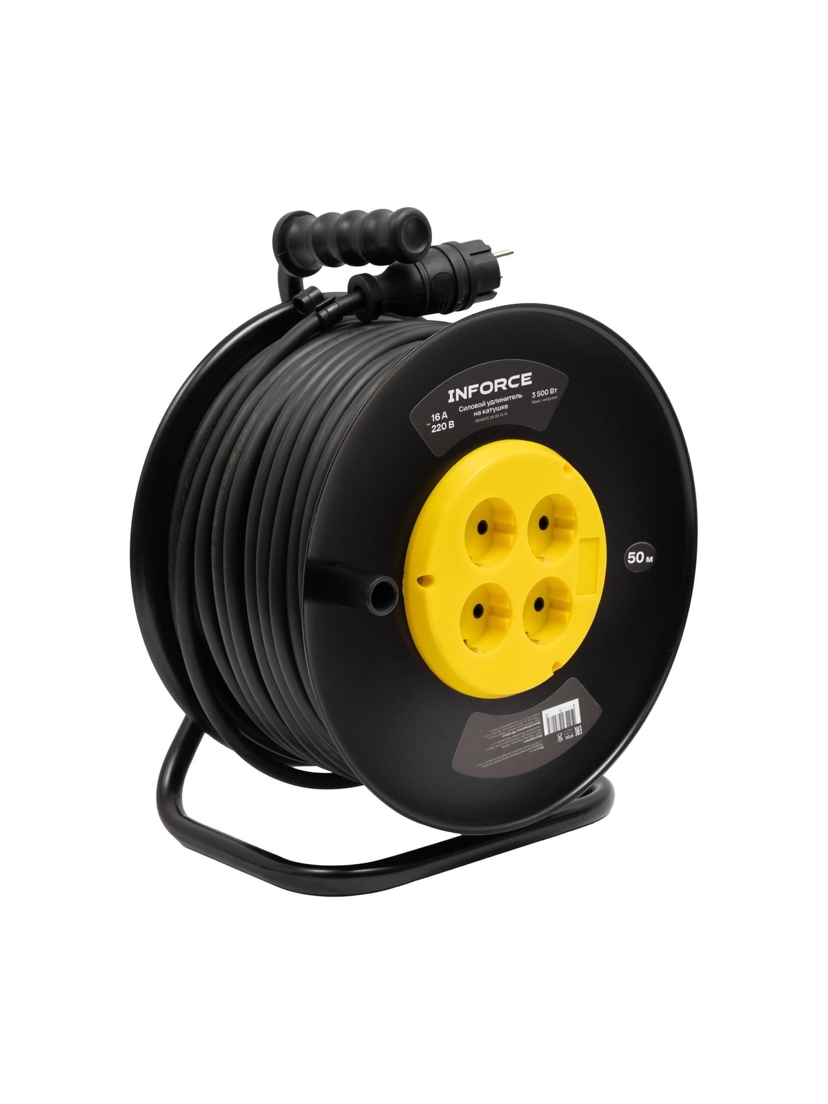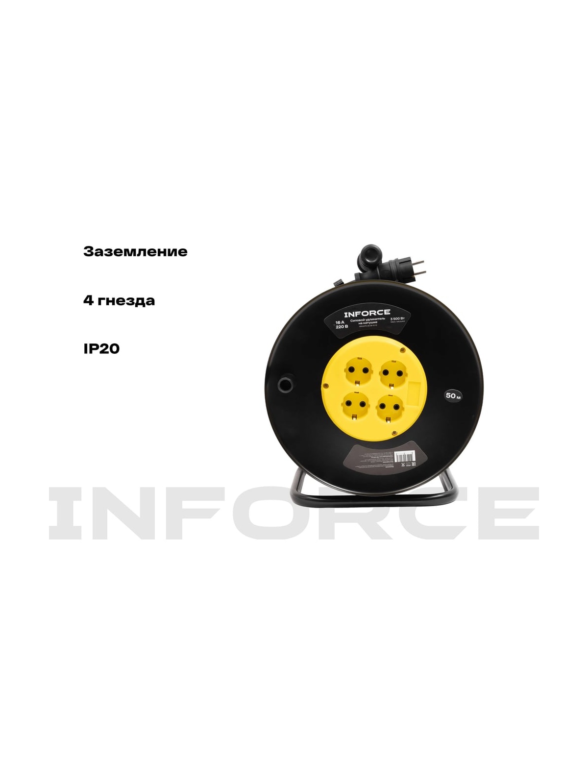 Силовой удлинитель Inforce 09-15-10 представляет собой надежное решение для удаленной работы, обеспечивая стабильное электропитание благодаря кабелю длиной 50 метров. Оснащенный четырьмя розетками с заземлением, он поддерживает напряжение сети 220 В и номинальную силу тока 16 А, что позволяет подключать устройства общей мощностью до 3500 Вт. Кабель изготовлен по ГОСТ 31223-2012. Морозостойкий кабель типа КГ с сечением 3х2,5 мм² обеспечивает долговечность и устойчивость к механическим повреждениям. Металлическая катушка обеспечивает прочность и устойчивость конструкции. Удлинитель имеет степень защиты IP20 и может эксплуатироваться при температуре от -60 до +40°С. Термовыключатель добавляет дополнительный уровень безопасности, предотвращая перегрев. Заземляющий кабель защищает от поражения электрическим током.