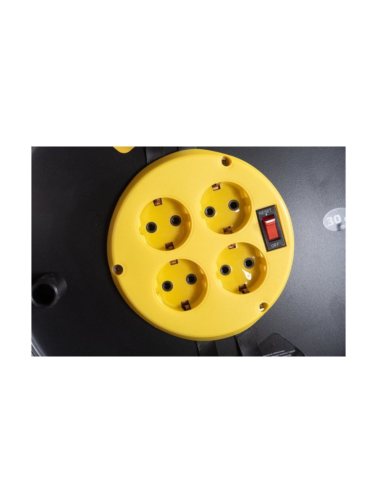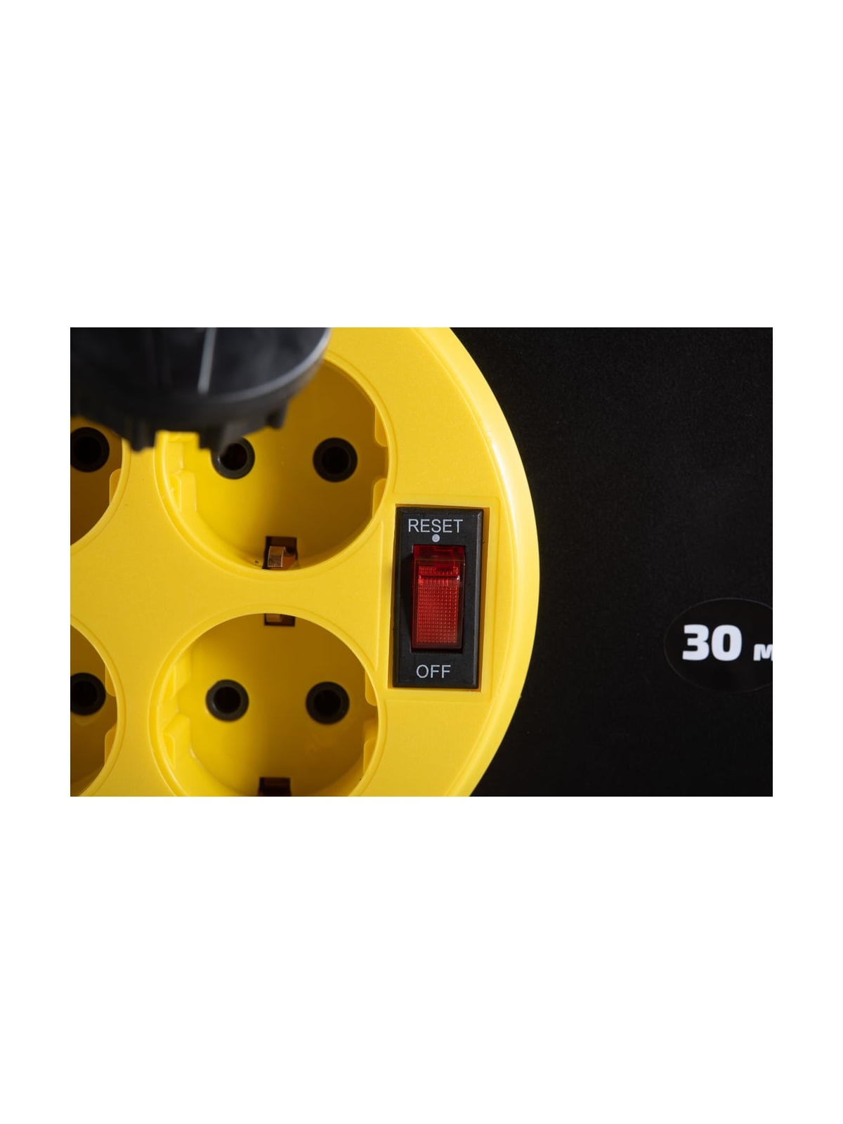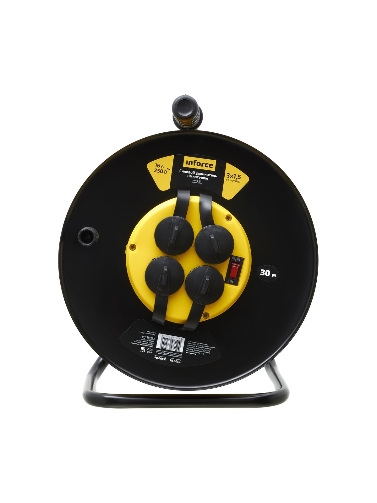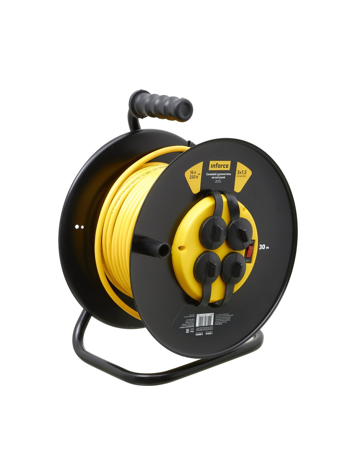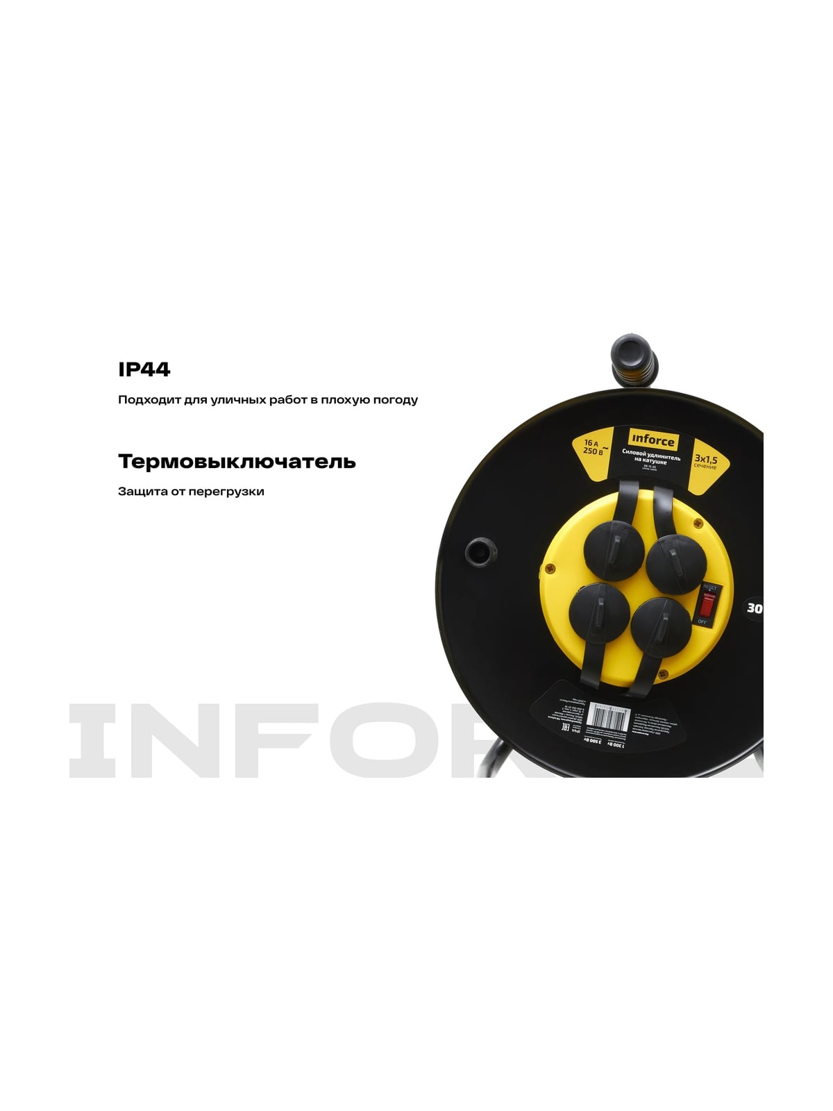 Силовой удлинитель на катушке Inforce 4 гнезда, с/з ПВС 3х1,5 16A 30м IP44 GRANITE ZG 09-15-05 предназначен для использования в тяжелых условиях. Удлинитель можно применять на стройках, на производстве, а так же на открытом воздухе Кабель изготовлен по ГОСТ 31223-2012. Кабель типа ПВС с сечением 3х1,5 мм² обеспечивает долговечность и устойчивость к механическим повреждениям. Удлинитель имеет степень защиты IP44 и может эксплуатироваться при температуре от -5 до +40°С. Защитные крышки на розетках предохраняют от попадания пыли и влаги, продлевая срок службы удлинителя. Термовыключатель добавляет дополнительный уровень безопасности, предотвращая перегрев. Заземляющий кабель защищает от поражения электрическим током.