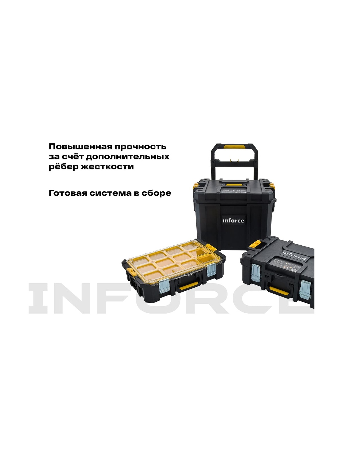 Систему хранения инструмента Inforce 3 в 1 06-20-19 можно использовать по отдельности, либо комбинировать с другими ящиками системы из линейки Inforce Modular System. Вмещает электроинструмент и громоздкие инструменты; Имеет усиленные стенки; Прочные металлические защёлки; Резиновые колеса; Складная телескопическая ручка; Высота ручки от пола в сложенном состоянии 55см.