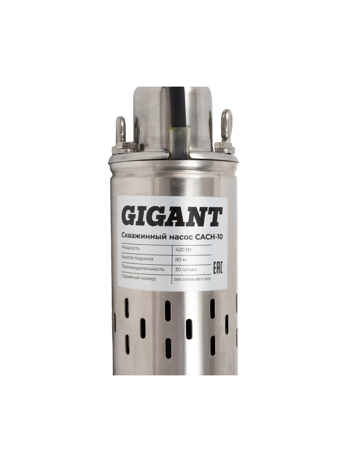 Скважинный насос Gigant CACH-10 подходит для установки в скважины диаметром от 100 мм. Насосный винт выполнен из хромированной, а корпус – из нержавеющей стали. Степень защиты IPХ8 обеспечивает его герметичность и защиту электродеталей от попадания воды при погружении насоса на глубину.