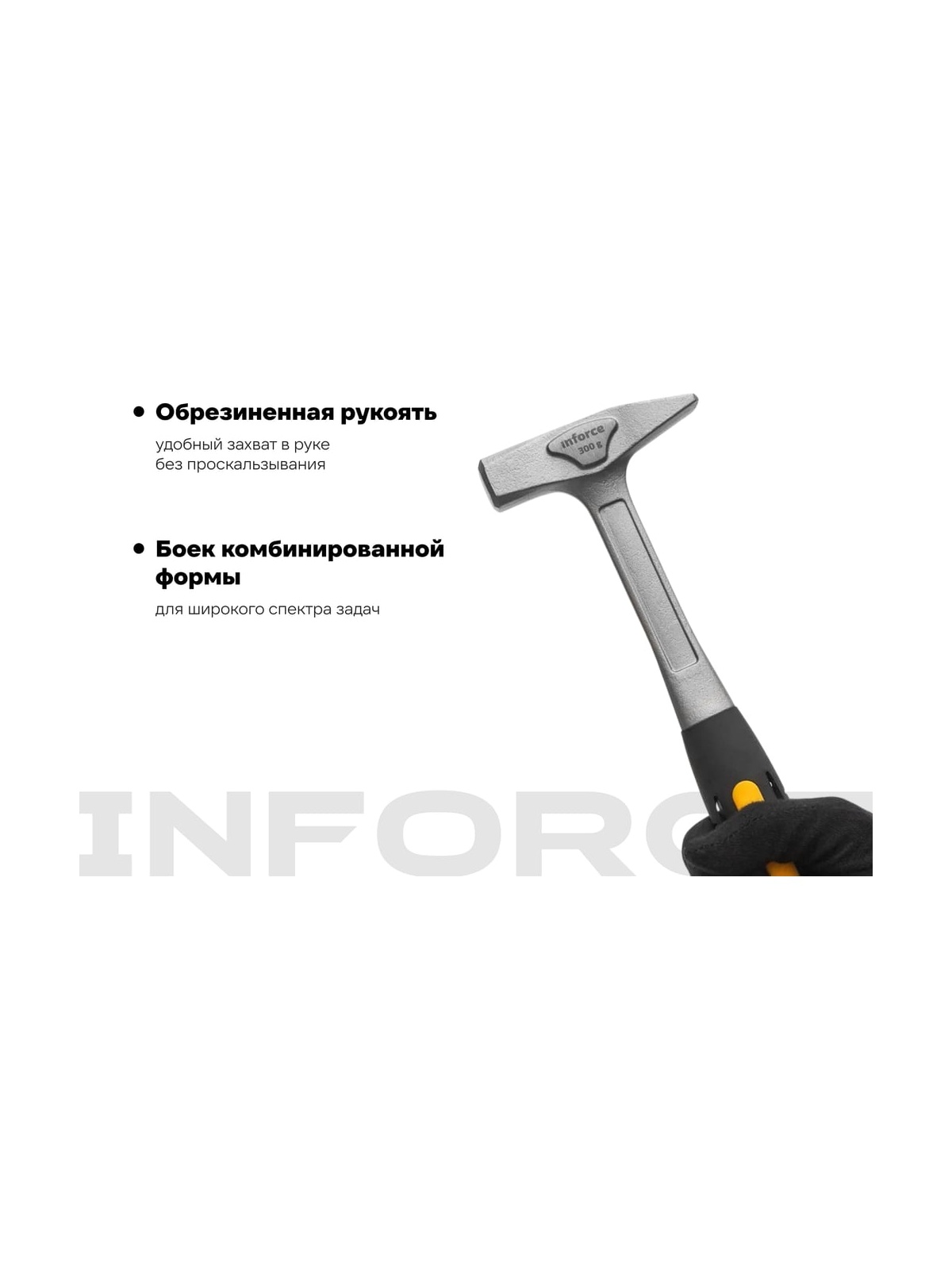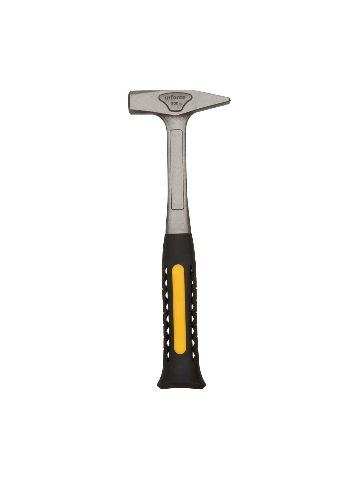 Слесарный цельнокованый молоток 300 г Inforce 06-16-12 обладает высокой прочностью. Инструмент полностью выполнен из стали марки 55. Рукоять не скользит в ладонях и обеспечивает надежный хват за счет использования термопластичной резины.