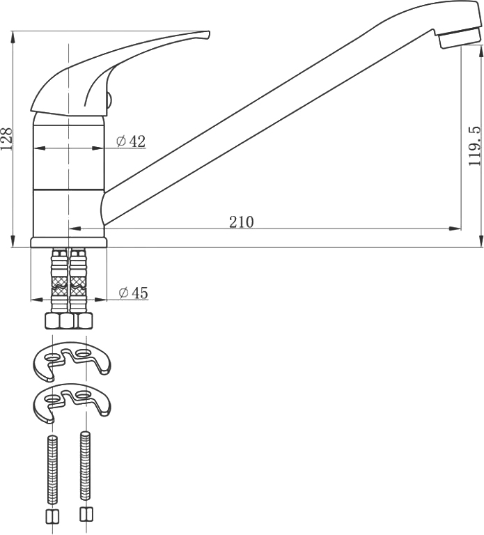 ВКоробке - Смеситель - 1 шт. Набор креплений - 1 шт.