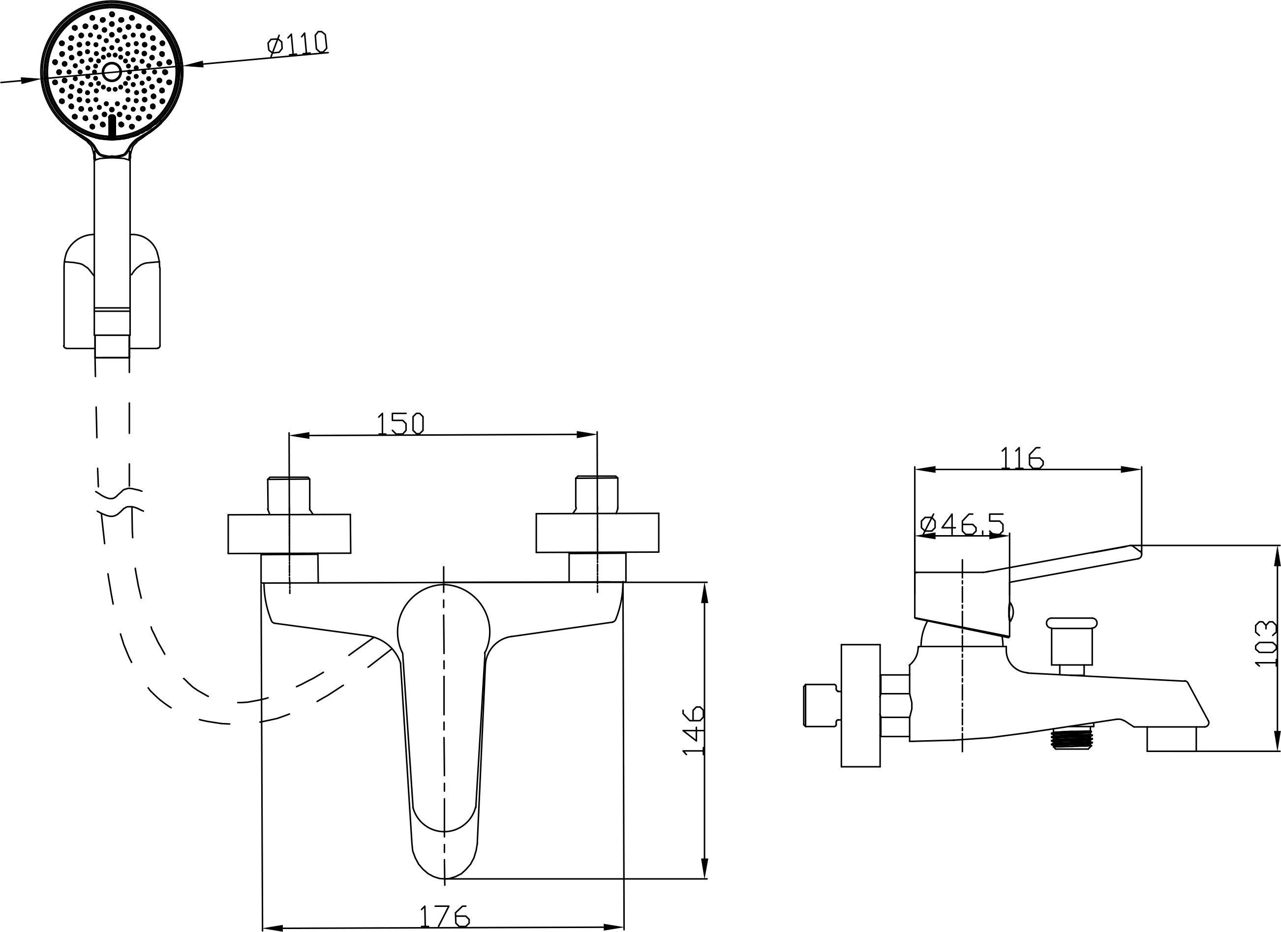 Тип - смеситель для ванны с душем,комплект наружного монтажа
