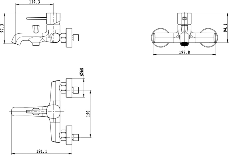 Тип - смеситель для ванны с душем,смеситель для ванны с душем наружного монтажа