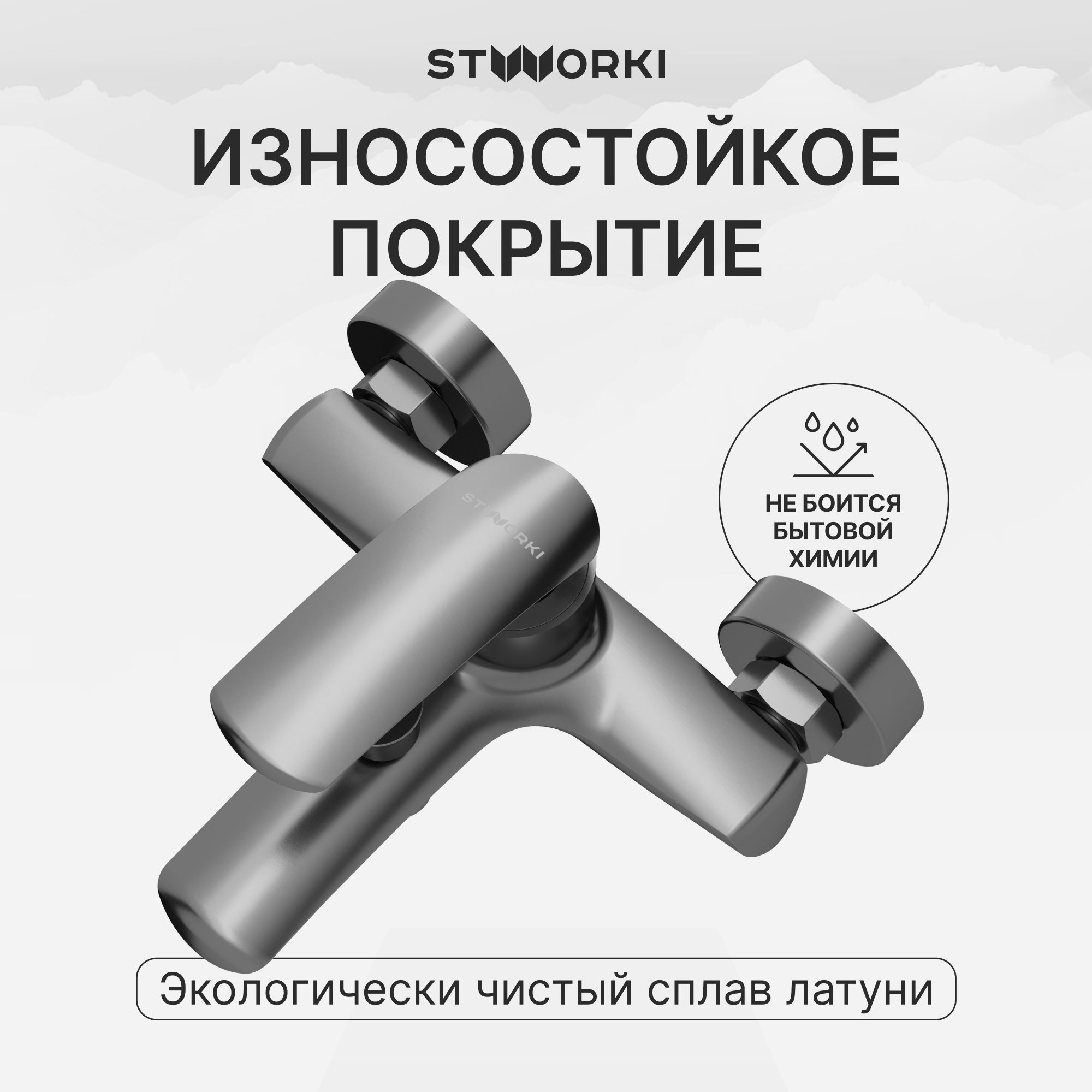 Преимущества - экологически чистый сплав латуни,износостойкое покрытие,картридж повышенной надежности,тихая работа и плавное управление,струя без брызг