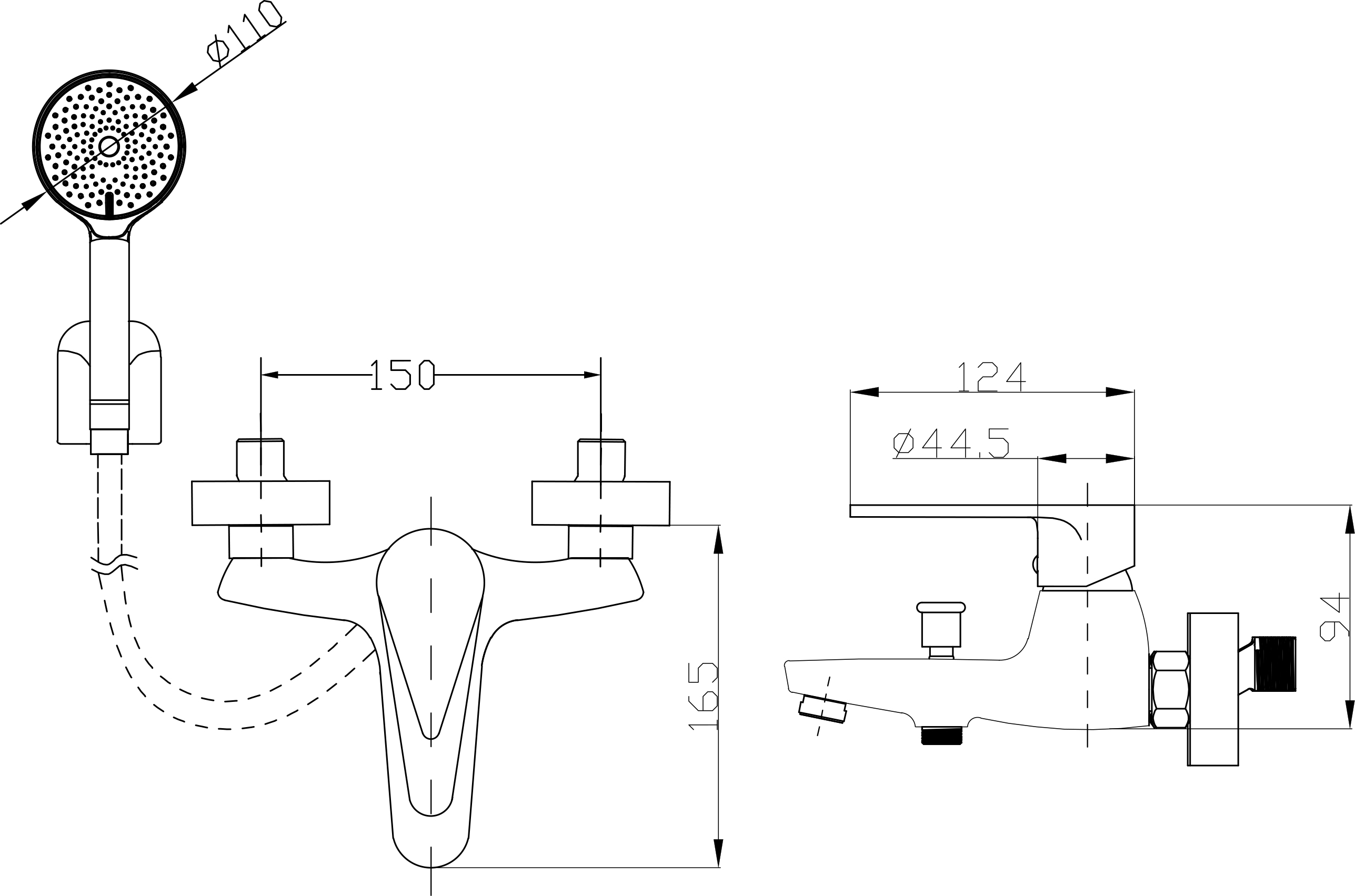 Расположение подключения душа - одна точка, снизу
