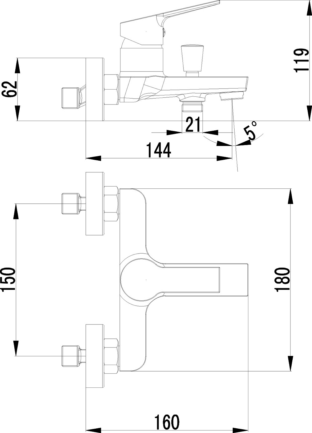 Тип - смеситель для ванны с душем,смеситель для ванны с душем наружного монтажа